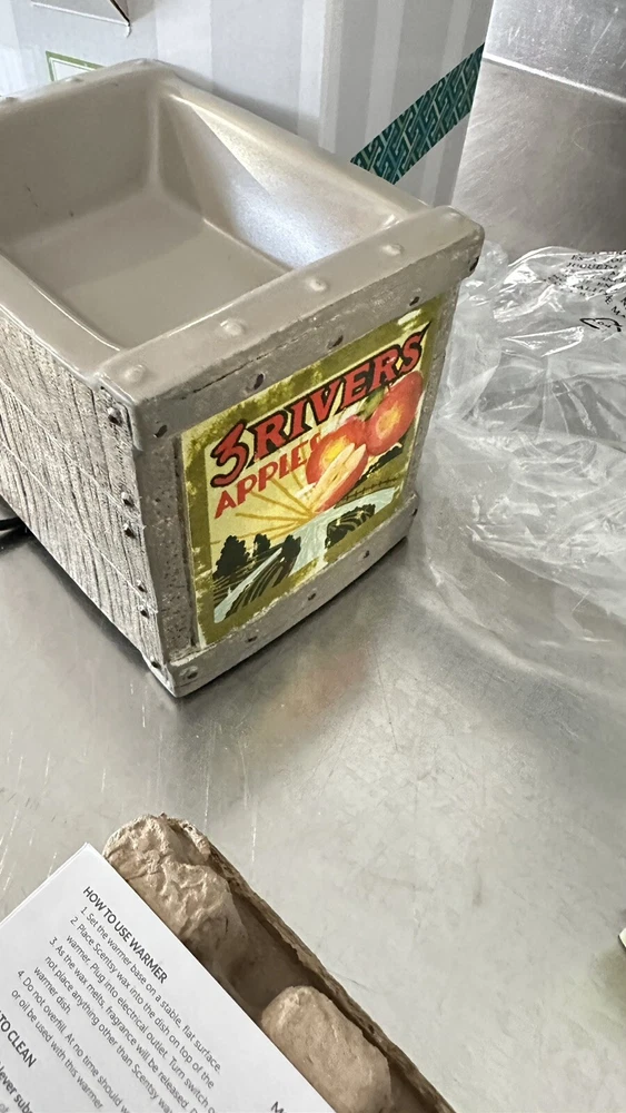 Scentsy “Fruit Crate” 🍏 🍏 🍏🍏🍏🍏🍏🍏 Retired BEAUTIFUL HOME DECOR PIECE. THERE ARE 3 DESIGNS TO THIS WARMER. A RUSTIC CRATE ON THE FRONT, FRESH HOME GROWN PEACHES ON THE SIDE & 3 RIVERS APPLE DESIGN ON THE OTHER SIDE. Element Warmer THREE Sided warmer see pics two designs ~New in Box ~ apples. ELEMENT. Design means ….No bulbs 💡 ever to change Condition is New. Shipped with USPS Priority Mail. 🌈🌻🍀💰🖤🐣🌺🏈🎁❤️ALWAYSADEALZIMMERMAN Scentsy❤️Scentsy🤍Scentsy 💙 🤑HUGE LIQUIDATION SALE! 🤑 I JUST LISTED 🤪 over 350 new WARMERS & a HUGE 🤩 Amount of SCENTSY PRODUCTS! 📣WARMERS & WAX 📣DIFFUSERS & ESSENTIAL OILS 📣FANS, PURIFIERS, PODS 📣UNPLUGGED ITEMS ( CAR BAR REFRESHERS, SCENT CIRCLES, TRAVEL TINS, SCENT PAKS) 📣LAUNDRY PRODUCTS 📣KIDS BUDDYS (TOYS & PRODUCTS) 📣SCENTSY PET CARE LINE 📣BODY PRODUCTS (BODY CREAM, HAND LOTION, SUGAR SCRUBS, FRAGRANCE SPRAY, BODY WASH, & MORE) 📣RARE RETIRED SCENTS & collector warmers … Liquidated products are from Retired Scentsy Consultants 😍 liquidating inventory @ HUGE SAVINGS 💰 We get new product in all the time. So Like my ebay Store & come back & shop! https://www.ebay.com/str/alwaysadealzimmerman?mkcid=16&mkevt=1&mkrid=711-127632-2357-0&ssspo=lpdTz31nQ06&sssrc=3418065&ssuid=&widget_ver=artemis&media=COPY We get all of the New products and also RARE Retired Scentsy, We sell consultant supplies, sample wax jars and so much more… SPECIAL COLLECTIONS: Fragrances and products developed with SCENTSY INC. licensing partners. DISNEY* & PIXAR* MOVIES (MONSTERS INC. / TURNING RED) STAR WARS* / MANDALORIAN* / DC* WB * Warner Bros ENTERTAINMENT Harry Potter* MARVEL * NHL * NFL & so many more… (*Scentsy and its logos are TMs of Scentsy, Inc. © 2015-2023. trademarks, trade names, service marks and logos appearing on products are proprietary trademarks of SCENTSY & their special Collections.) About Scentsy Warmers Scentsy melt Scentsy Wax Bars with the heat of a low-watt bulb. Standard Warmers use 20-watt, 25-watt or 40-watt Edison bulbs. Or, add a pop of color to your warmer with colored bulbs in green, orange and red. Each warmer includes one light bulb. Additional light bulls sold separately. Use & Care Place as many or as few of the scented wax cubes into your warmer to control the amount of fragrance you want. As they melt, the scent will begin to release into the air. Once the scent runs out, replace the wax with fresh cubes. To clean your used wax out of the warmer, use our Cotton Cleanup or cotton balls to soak up the wax. Or, pour it out and wipe the dish clean with a paper towel. Pour into the old container, or into your trash can - either is safe! Scentsy Pro Tip - Look on the bottom of your wax dish or warmer for a number - the number indicates the suggested number of cubes to use for that particular warmer! I have currently 😳over 2,000 WAX BARS, & tons of, X-LARGE WAX BRICKS 17 oz. (which are equivilent to 5 or 6 regular size wax bars 3.4 oz.) https://www.ebay.com/itm/264603100479?mkcid=16&mkevt=1&mkrid=711-127632-2357-0&ssspo=lpdTz31nQ06&sssrc=2380676&ssuid=&widget_ver=artemis&media=COPY I have Diffusers of all sizes & styles from Mini fan diffusers all the way to the HEPA AIR PURIFIER ( $250 ) Diffuser Base ( $85) tear drop Two-part diffuser base (funnel and reservoir) is 10" tall, 5.5" wide. Plus TONS of Diffuser fashion shades to change your current diffuser look. * multiple ads… https://www.ebay.com/itm/265567094395?mkcid=16&mkevt=1&mkrid=711-127632-2357-0&ssspo=lpdTz31nQ06&sssrc=2380676&ssuid=&widget_ver=artemis&media=COPY Stocked currently , we have over 200 Cleaning supplies, https://www.ebay.com/itm/265023757125?mkcid=16&mkevt=1&mkrid=711-127632-2357-0&ssspo=lpdTz31nQ06&sssrc=2380676&ssuid=&widget_ver=artemis&media=COPY 500 + Scentsy Beauty products ~ in every scent possible (Body wash, lotions, hand cream, bath bombs, Soufflé, hand creams & more ! Room Sprays: hundreds of scents … https://www.ebay.com/itm/264565045529?hash=item3d994e3919:g:ffwAAOSwwIhiF87B Current Scents & your favorite Retired scents. Scentsy BUDDY (kids plush line): I normally DO NOT put Scent PAKS inside buddy’s due to allergies, or sensitivities to scents. * unless the consultant already had it stored in box it is not included * some boxes may have wear from storage. I have inspected everything & I will discount accordingly 🤪 * I have multiple buddy ads…. New buddy’s with no box - severely discounted!!! https://www.ebay.com/itm/264639624477?mkcid=16&mkevt=1&mkrid=711-127632-2357-0&ssspo=lpdTz31nQ06&sssrc=2380676&ssuid=&widget_ver=artemis&media=COPY SCENTSY SCENT PAKS : Small bundles of joyful scents can be used in BUDDYS , your car, luggage- so many great places. 🦄 I have many for sale. *ALWAYS A DEAL or its affiliates are NOT CONSULTANTS or sales agents of the manufacturer of these product lines and we are not otherwise affiliated with the manufacturer, and we have no licensing with their partners. The "SCENTSY Independent Consultant Contract" means SCENTSY's Independent Consultant Contract, collectively with the SCENTSY Independent Consultant Terms and Conditions attached to or accompanying such contract. We are Not, nor have we ever been contractual “Scentsy Consultants”, therefore ANY PURCHASES OF SUCH MATERIALS SHALL BE AT YOUR SOLE RISK. Because we are not affiliated with the manufacturer, this product may NOT be covered by the manufacturer’s warranties, return policies, or provided with the same services provided by the manufacturer or their representatives. Most times if Scentsy is aware the item is purchased on eBay , Amazon or not consultant directly the warranty is Void. We offer these items as-is and without warranties or Services you may receive if purchased from the manufacturer or their representatives. Because the item may not contain the same warranties or services of a product offered by sellers affiliated with the manufacturer, i