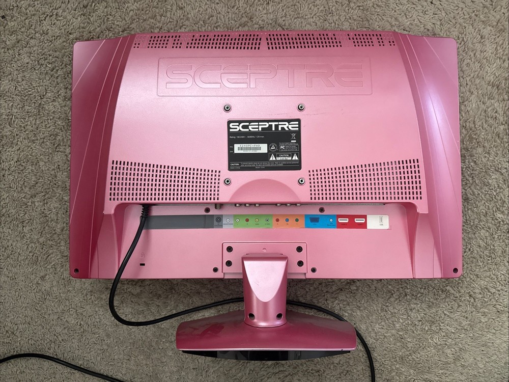 The Sceptre 24" 1080p 60Hz LED HDTV in pink is a stylish and functional TV monitor perfect for girls. With a screen size of 24 inches and a maximum resolution of 1080p, this LED TV provides a clear and vibrant viewing experience. The 60Hz refresh rate ensures smooth visuals while the pink color adds a fun and feminine touch to any room. The model E246BD-F offers a sleek design and reliable performance, making it a great choice for watching your favorite shows or movies in style. DM for more pictures if wanted.