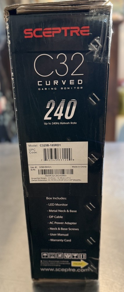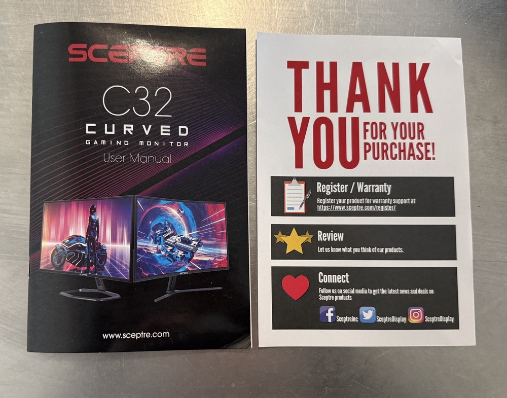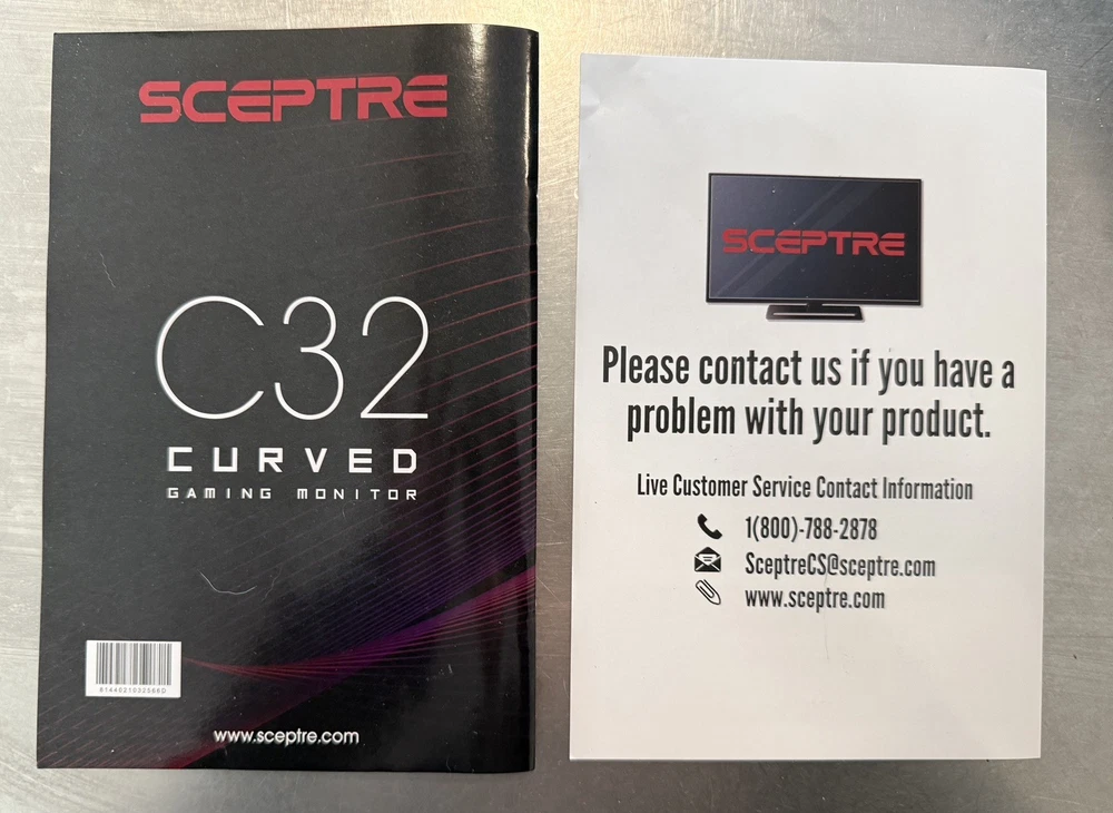 Sceptre C32 Curved Monitor – High Resolution – Like New (Complete in Box) Sceptre C32 curved monitor in like-new condition. Lightly used and fully functional with a clean, clear display and immersive curved screen. Ideal for gaming, work, or everyday use. Condition: • Like new / gently used • No scratches, cracks, dead pixels, or display issues • Tested and working perfectly Included: • Sceptre C32 curved monitor • Original box • All original cables • User manual • Warranty card