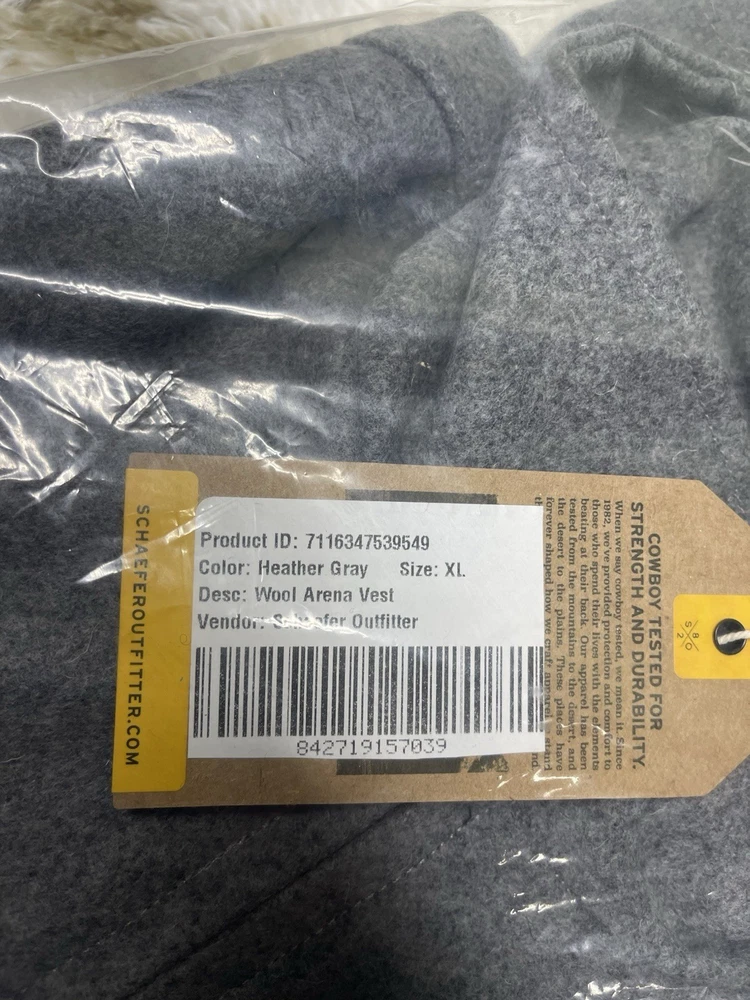 Men's Size XL Color Heather Gray MSRP$165+ Brand new with tag and orginal packgeing All sales are final, please make sure it's the right size before ordering Fast shipping via UPS Ground A comfortable and dependable wool vest that is dapper enough for an evening out on the town and functional enough for mornings in the field. Shell: 22 oz. Melton Wool (85% Wool, 15% Nylon) Premium Taffeta Lining 2-Way Zippered Front 2-Pocket Front Interior Chest Pockets Classic Fit, True to Size Designed in Texas, Imported