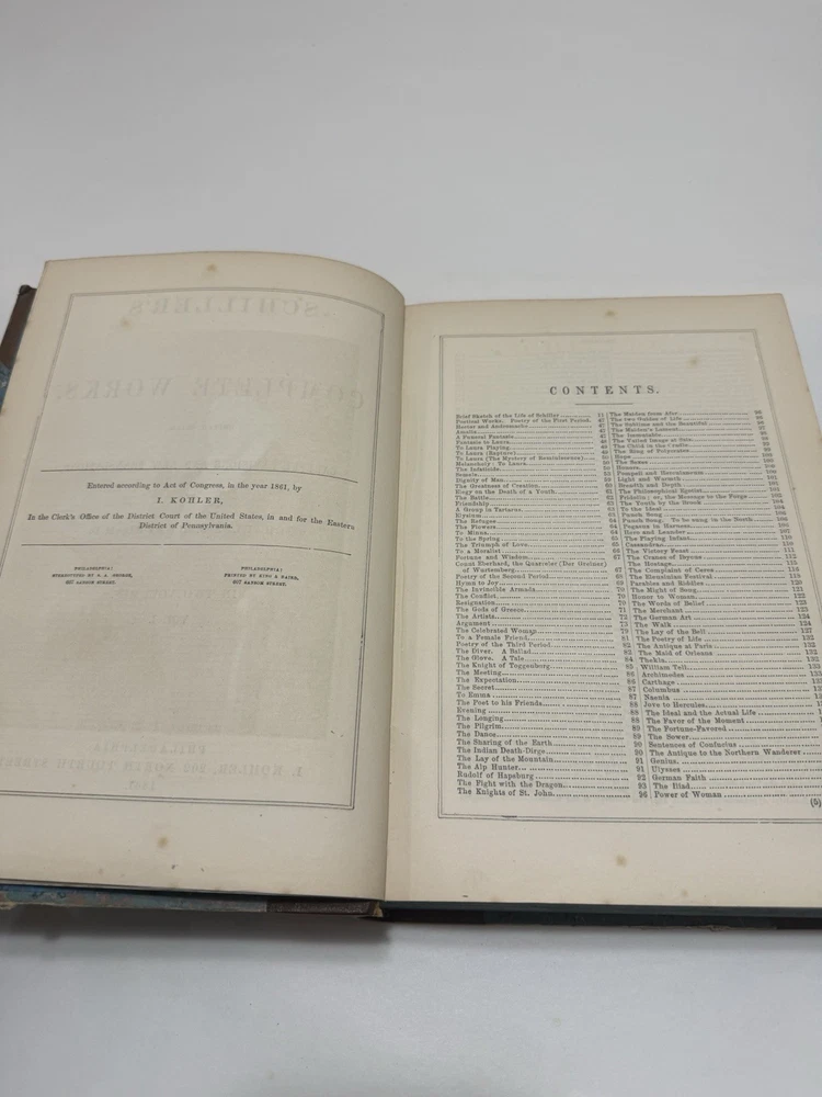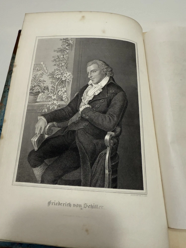 Title: Schiller's Complete Works by Charles J. Hempel – 1861 Original Leather 2-Volume Set – Rare Antique Edition Item Description: A rare and valuable 2-volume set of Schiller's Complete Works , translated by Charles J. Hempel , published in 1861 . This antique edition is bound in original leather with intricate detailing and is a collector’s dream. The set contains the full works of Friedrich Schiller , one of Germany's greatest playwrights, poets, and philosophers. This is an exceptional find for collectors of rare books and lovers of German literature. Features: Author: Friedrich Schiller, translated by Charles J. Hempel Publisher: 1861 (Original Edition) Edition: Complete 2-volume set Format: Leather-bound with gilt detailing on the spine and covers Condition: Very good for its age, with slight aging and wear typical of antique books, but in overall excellent shape for a 160+ year-old set Key Highlights: Complete works of Friedrich Schiller , including his most important plays, poems, and philosophical writings. Translated by Charles J. Hempel , offering an English-language presentation of Schiller's monumental works. Antique leather binding with gilt-edged pages and decorative embossing, making this a beautifully crafted set. Ideal for collectors of rare books , this edition is a unique and historic piece that reflects the high-quality production standards of 19th-century publishing. A remarkable addition to any library of German literature or classic works , perfect for display or scholarly study.