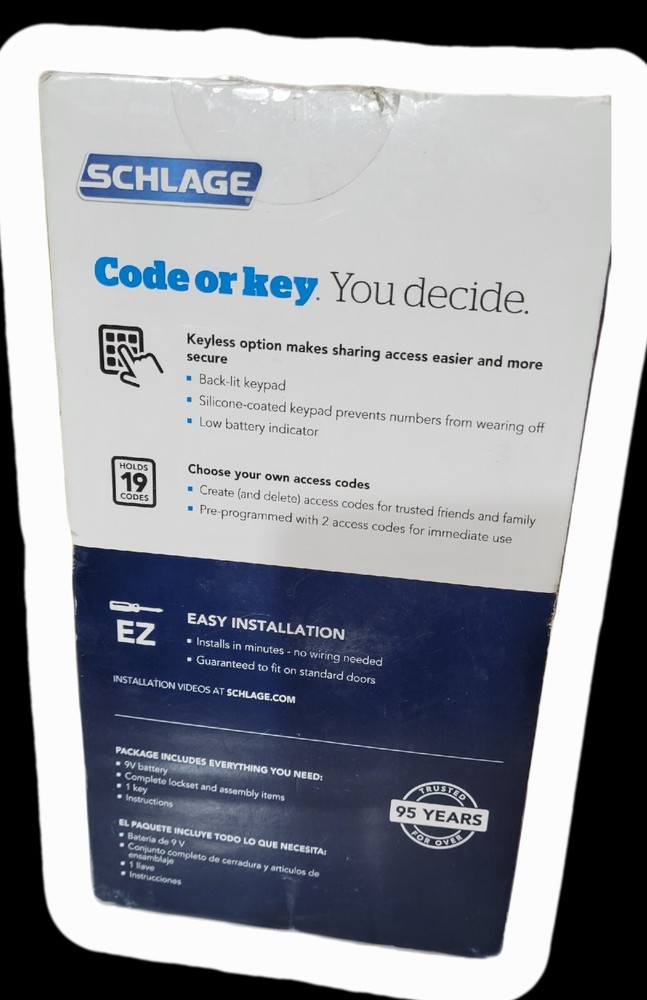 This lock is a game-changer! The Schlage Camelot keypad deadbolt is super easy to install and use—no more fumbling for keys in the dark. The bright brass finish looks sleek, and the keypad works flawlessly every time. Love that it still has a key option as backup. Super secure and gives great peace of mind. Worth every penny!