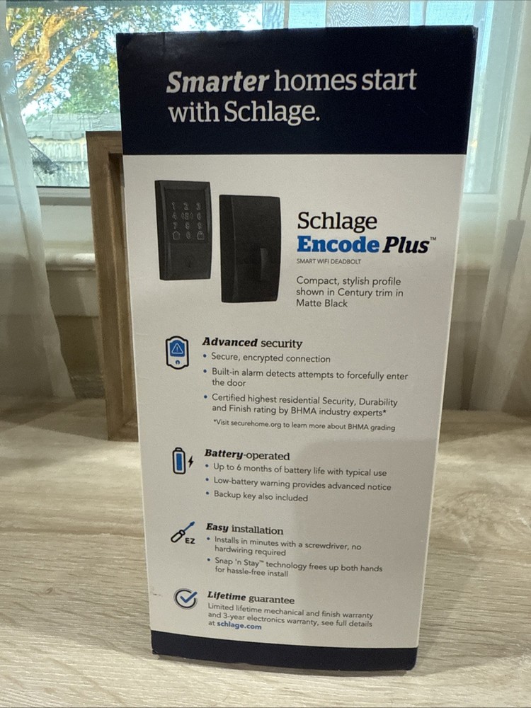 Schlage Encode Plus Smart WiFi Deadbolt w/ Century Trim - Matte Black. Condition is New. Shipped with USPS Priority Mail.