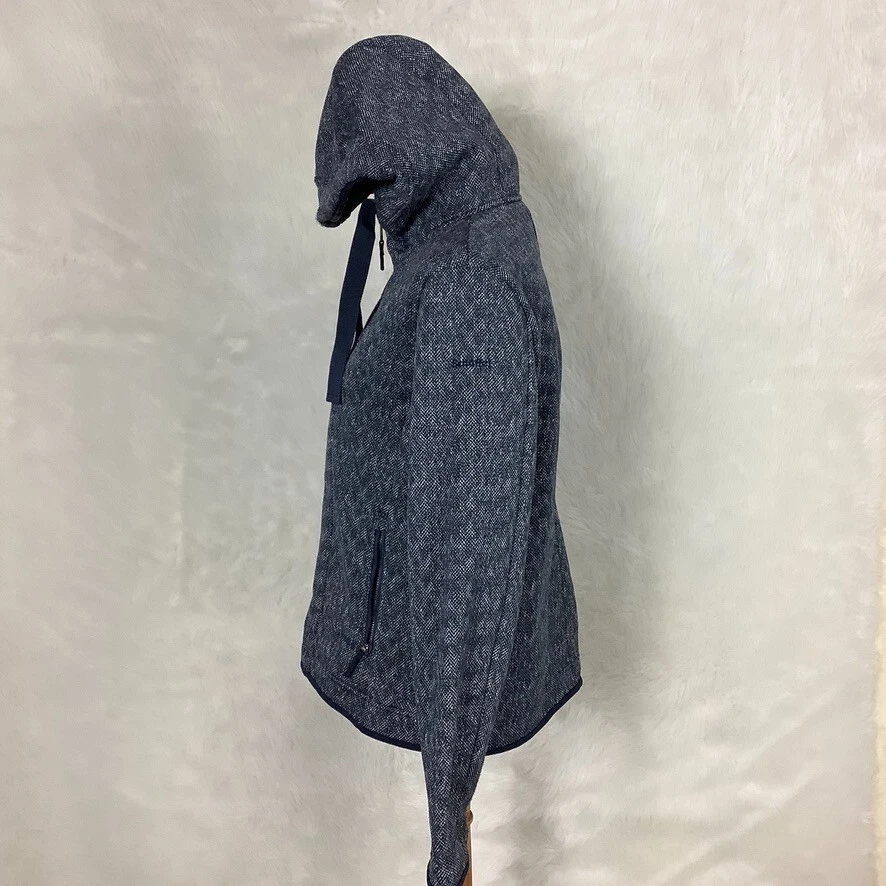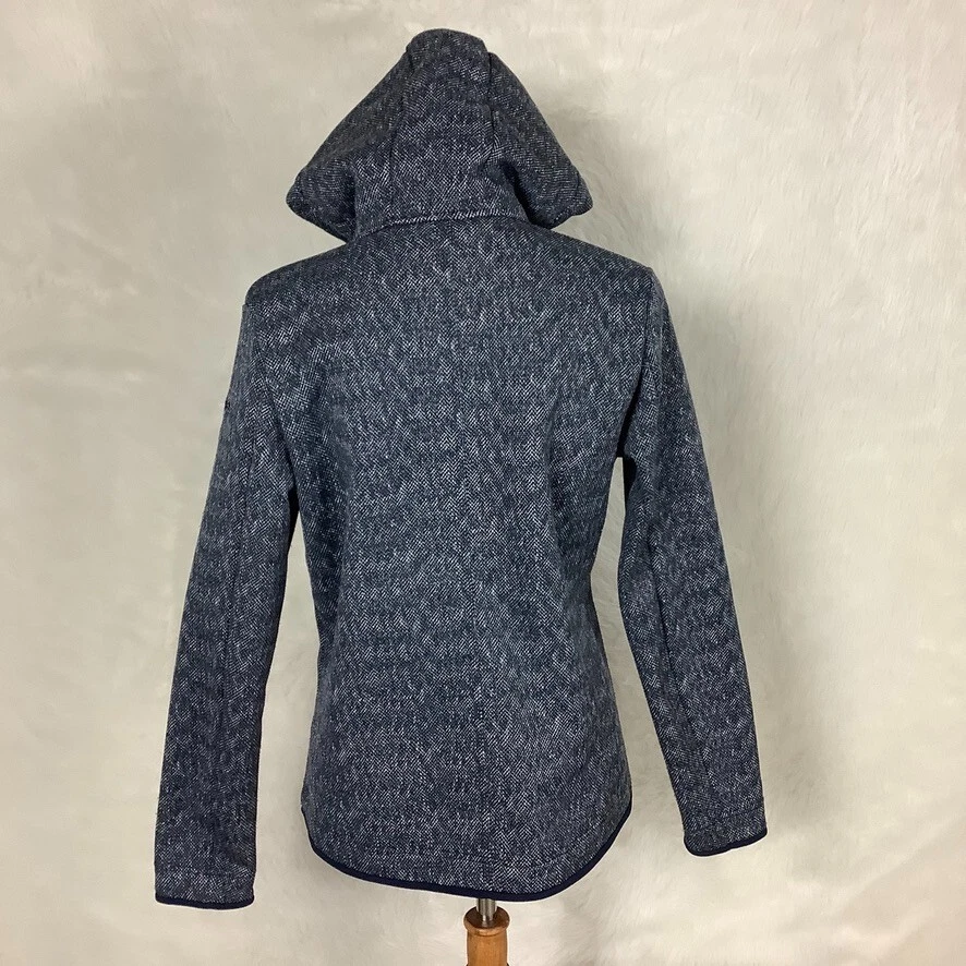 This is a heather blue, long sleeve, hooded, zip front, drawcord neck, jacket from Schoffel. Has zippered pockets. 100% polyester outer. 100% nylon hood lining. No flaws. For reference the mannequin is a size 6-8 with measurements of: 34 in 26 in 35 in. Schoffel size 40 = US women's L. Fall, winter, hiking, outdoors. Approx. measurements all un-stretched: 20 in armpit to armpit 19 in side to side waist 16.5 in seam to seam shoulder to shoulder at top 23.5 in front ength 24 3/4 in back length 24.5 in shoulder to cuff (10437)