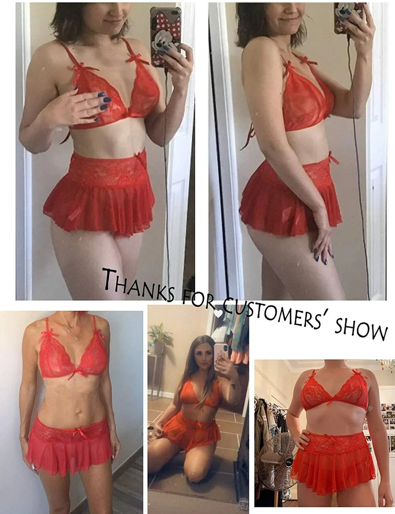 Description: Material: This Sexy school girl outfit costume is made of 95% polyester, 5% spandex, the high quality fabric is soft, stretchable and comfortable to wear Sexy: The spaghetti strap bra and panties match with the plaid printed pattern tie and grid hem skirt, giving you a dreamlike feeling Easy to Wear: Sexy schoolgirl lingerie for women ,Plaid midi Skirt with Lace Hemline .The plaid skirt has elastic waistband, easy to find perfect size and easy to put on and take off Occasions: Ideal for both indoor and outdoor events, perfect for home wear, vacation, holiday, travel, seaside, beach, honeymoon, dating and daily life, etc Ideal Gifts: Perfect for Valentine's Day, bridal gift, honeymoon, anniversary, etc., giving you passion and good mood, making you more charming and beautiful Package Includes: 1 set sexy lingerie inkfrog terapeak