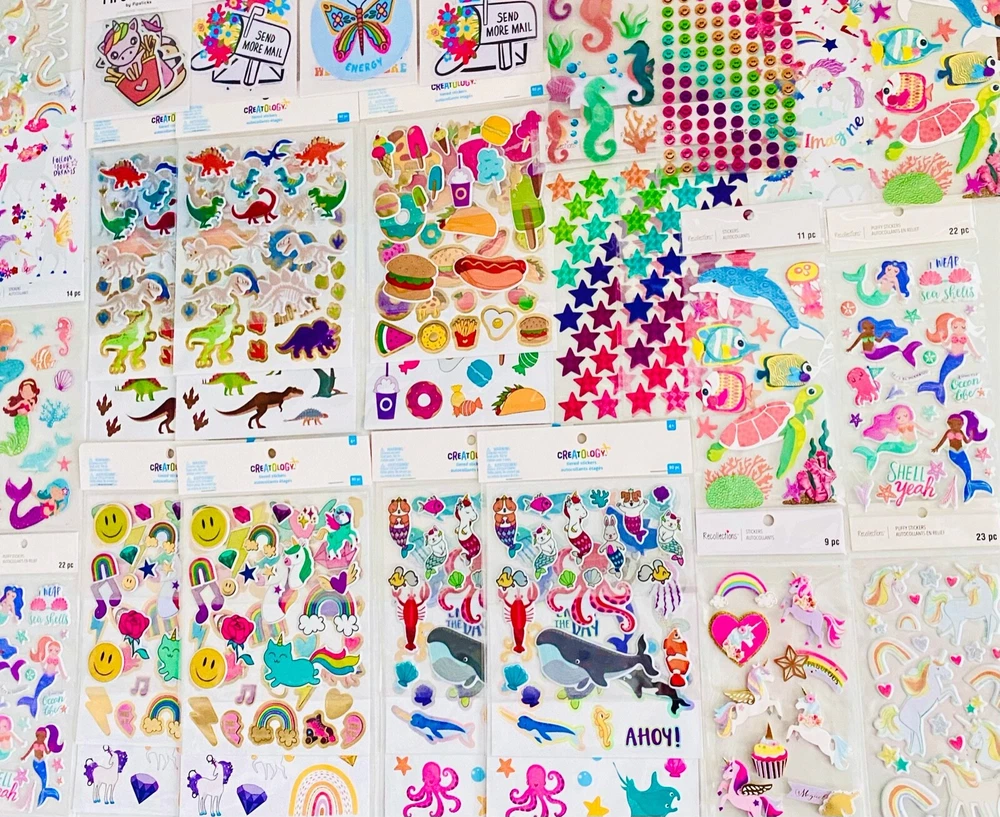 HUGE Mixed Sticker Lot | The Ultimate Kit | Qty. 899+ Stickers | High Quality Only! Fun Assortment of Puffy, Scrapbook, Cartoons, Bubble, Pop Up Stickers Packs For Everyone! You will receive 25+ Packs of beautiful colorful assortment. The Pack will include 899+ Stickers overall! I have included a large variety of pictures of the assortment available. The pictures give you an idea of what you will be receiving. Please Note: You will not receive everything pictured. Please contact me with any special requests. This HUGE Variety of fun designs stickers can be used in parties, classroom, school and home, good for reward for students, potty training, adding inside a birthday card, game activities, entertaining toddlers, etc. Perfect Gifts for Kids & all Occasions: Can be given as a gift for kids, girls, boys, toddlers, teens, students, friends, and classmates, they will love it!