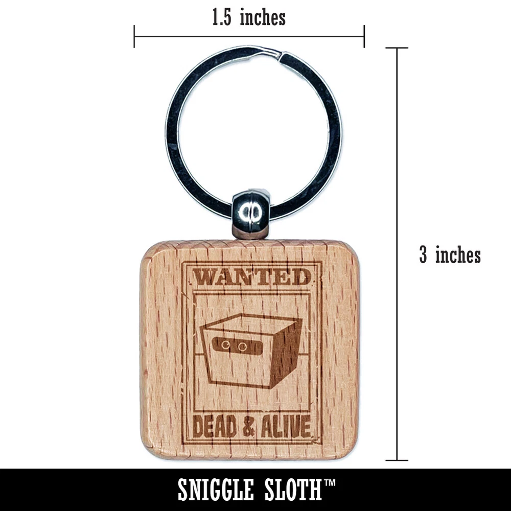 Schrodinger's Cat Wanted Dead and Alive Engraved Wood Square Keychain Tag Charm