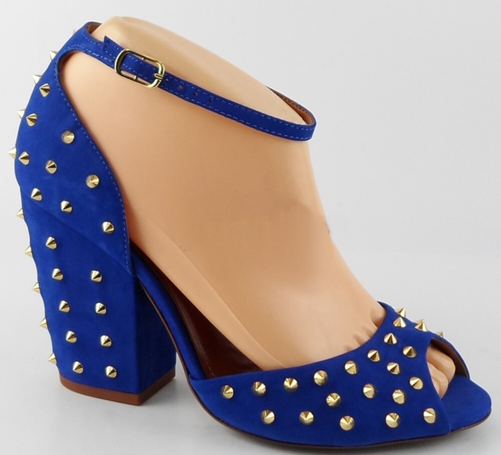 New/ clearance in original box Nubuck/ gold tone spikes upper; Leather lining; Leather sole Covered heel measures 4" * Lightly padded footbed Adjustable ankle strap with side buckle closure Open round toe design Made in BRAZIL *Measurements are hand taken for every item we sell. Every item is carefully inspected to ensure that you receive a quality product. Designer Shoe Box guarantees this product is 100% Authentic