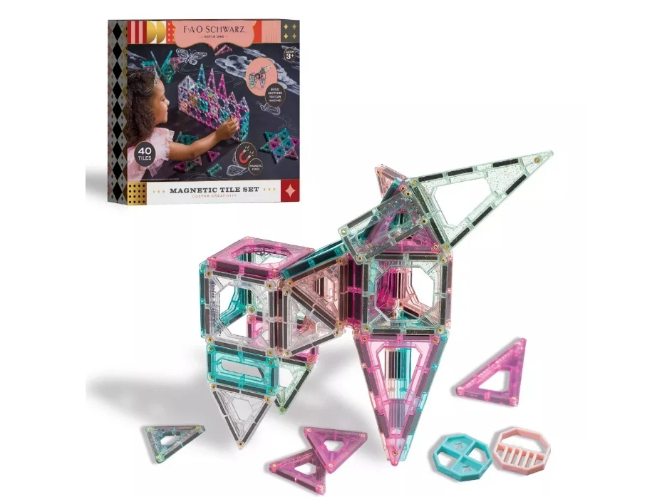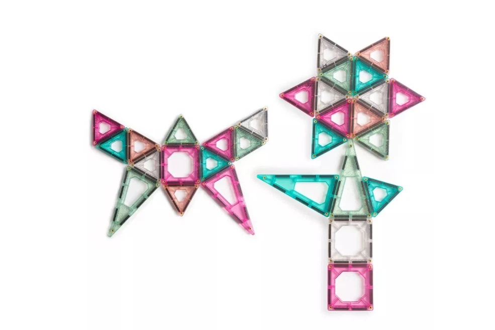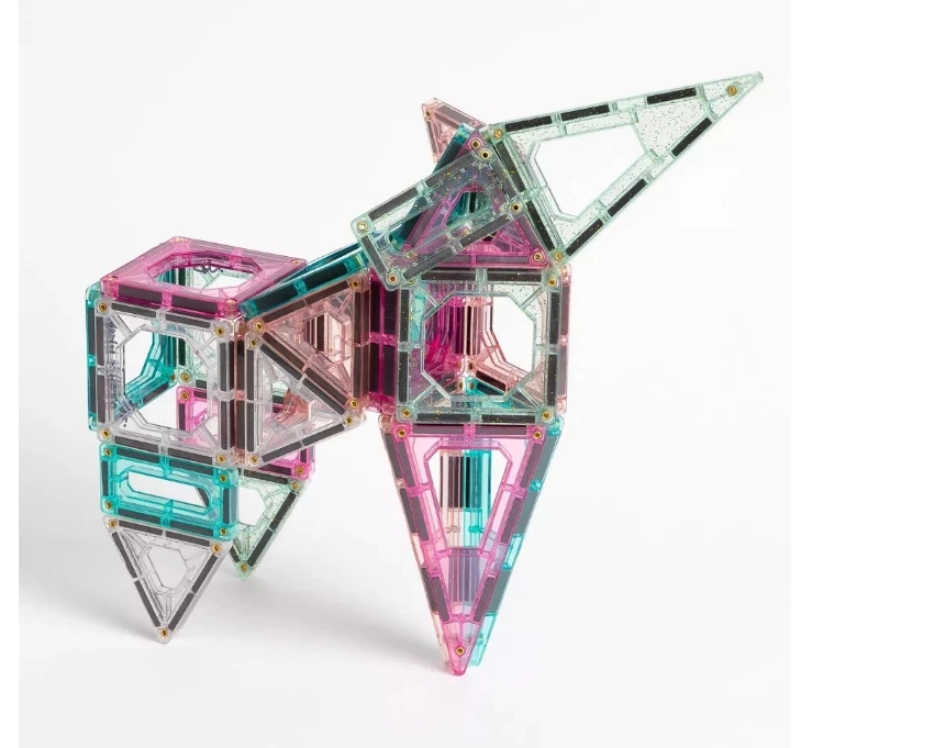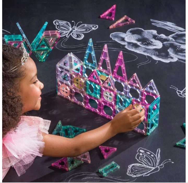Magnetic and creative expression for ages 3 and up 40-piece set Introduce kids to engineering Fun and engaging STEM toy Includes pink storage bag
