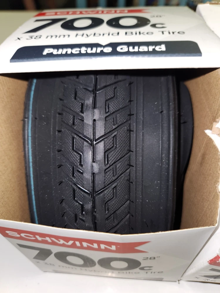 Pair (2) Schwinn HYBRID BIKE TIRE 700 C / 28" X 38 mm Puncture Guard BICYCLE Some wear on the boxes themselves, but the bike tires are still brand new.