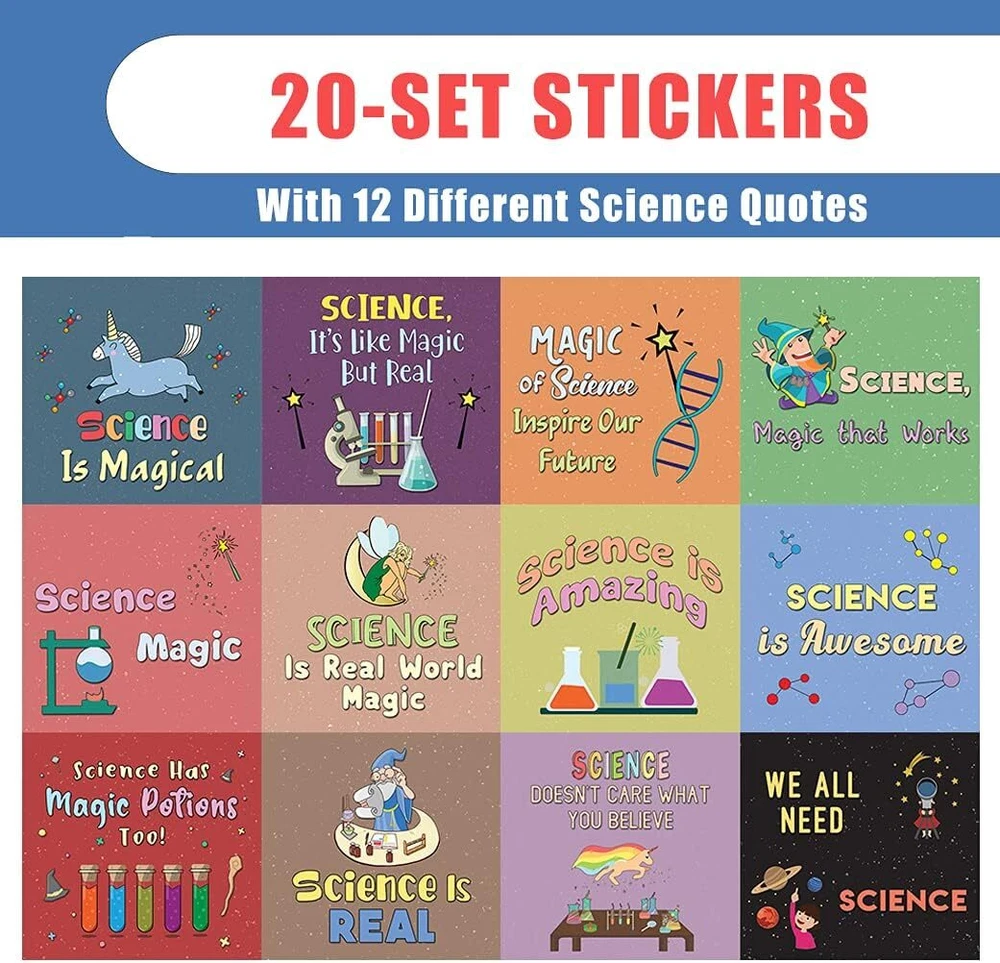12 UNIQUE DESIGNS INSPIRING STICKERS FOR YOUR DIY PERSONALIZED DECORATIONS - Creanoso Science is Magic Stickers – 20 Sheet. These colorful and uniquely inspiring square shaped stickers are the best tool for DIY decoration and personalization of your belongings. WIDE APPLICATION ON ANY FLAT SURFACE - can be used on any flat surface as decoration and personalization of your belongings. These awesome stickers can be stuck on a laptop, notebook, water bottle, pencil box, lunch box, suitcase, hard hat & helmet, decal artworks, phone cover, bikes, bicycles, and many more. MADE WITH DURABLE AND WATERPROOF MATERIALS - There is a lamination or coating to make the stickers high water resistant, and WILL NOT fade from the water. The stickers can be stuck anywhere you like, and they stick there and last a long time. A LOT OF STICKERS FOR LOWER PRICE - Each sheet with 12 individual 2.1” x 2.0” square stickers. There are 20 sheets, with a total of 240 pcs of stickers. GREAT STOCKING STUFFERS, TEACHING SUPPLEMENTARY MATERIALS AND GIVEAWAY - Great stocking stuffers gifts for Kids, Teens, Adults. A perfect design to give during classroom programs, homeschooling, birthdays, gatherings, family day, physical activities, and any other special occasions. Science is Magic Stickers (20 Sets X 12 Designs) COLORFUL AND COLLECTION OF TEXT STICKERS • Well designed. • Very encouraging. • Self-adhesive. Science is Magic Stickers (20 Sets X 12 Designs) are super fun to collect; you can't have just one! That's why you will find a selection of stickers right here. Each package comes with different stickers in a variety of designs. Stick them here, stick them there, stick them everywhere! Everyone will love these self-adhesive stickers. These colorful stickers are perfect for any adults and these come with very inspiring messages and bright pictures. A fun, inexpensive way to add a decorative, notes, and stationery. Delight yourself with uplifting messages designs that are very encouraging. Science is Magic Stickers (20 Sets X 12 Designs) perfect for giveaways, behavior incentives, prizes! These stickers are acid-free, nontoxic, and safe for use on photos. This product comes with a 60 days money back guarantee. You can return them to us for a full refund.