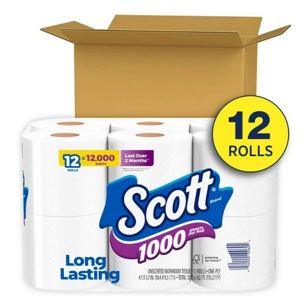$ 30.86Scott 1000 Toilet Paper, 24 Rolls, 1,000 Sheets per Roll 1-ply 2x longer