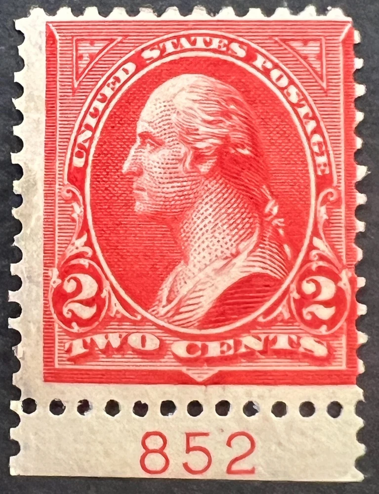 United States - General Issue - 2c - Scott#: 252 - George Washington, Type III Scott # 252 Denomination 2c Description George Washington, Type III Type Definitive Definitive/Commem. Definitive Format Single Stamp Gum Water Activated Print Method Engr. Perforation 12 Variety A88 Country United States Collection Held Boys Philatelics Color carmine Category General Issue Quantity 1 StampManage ID 8142 Printer Bureau of Printing and Engraving Issue Location Washington, DC Date Issued 10/5/1894 Series 1894 Created 11/2/2024 2:21:04 PM
