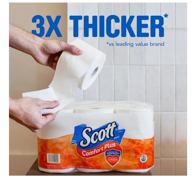 Scott ComfortPlus Toilet Paper, 12 Double Rolls, 231 Sheets per Roll, Septic-Safe, 1-Ply Toilet Tissue About this item 12 Double Rolls of Scott ComfortPlus Toilet Paper, 231 sheets per roll—packaging may vary from images shown. 3x stronger than the leading bargain brand, Scott ComfortPlus 1-ply toilet paper breaks down 6x faster* and is sewer-safe, septic-safe and clog-free. 1 Double Roll = 2 regular rolls, so you can change rolls less often. Free of perfumes or scents, so no need to worry about allergies or irritation. Scott bathroom tissue is sustainably sourced from responsibly managed forests, features recyclable packaging and is a 100% biodegradable tissue. Brand Scott Special Feature Flushable, Perforated, Septic Safe Unit Count 12 Count Material Paper Sheet Count 2772 Ply Rating 1-Ply Recommended Uses For Product Home . We offer FREE shipping on all orders! . We ship within Five business days of payment, usually sooner. . We use a selection of shipping services such as UPS, FedEx, USPS etc. . We only ship to the lower 48 states, no APO/FPO addresses or PO Boxes allowed. . Local pickups and combined shipping options are not provided at this time. . Your satisfaction is a wonderful reward for our efforts. Please assist us by leaving a positive review if you feel pleased with our service. . In the event that you encounter any difficulties related to your order, please do not hesitate to reach out to us directly through the Messaging system on the Ebay platform. Kindly consider opening a COMPLAINT or a RETURN REQUEST as a last resort, only after all other possible measures have been attempted and we have been unable to provide you with assistance. . We will get in touch with you within 24 hours and make every effort to ensure your satisfaction. . Please rest assured of our service quality.