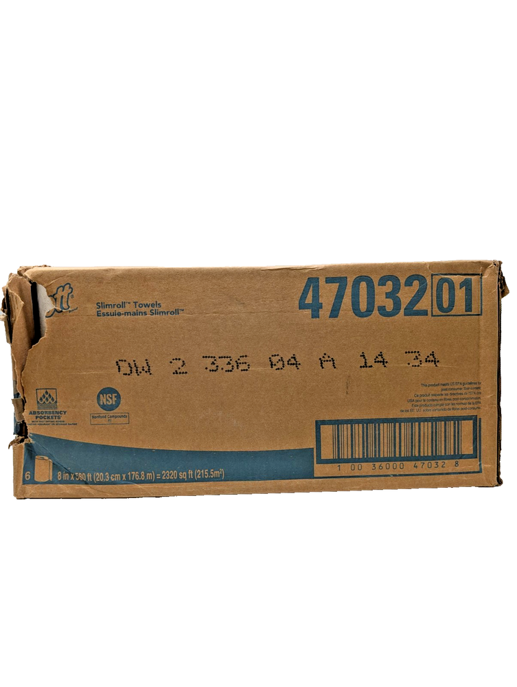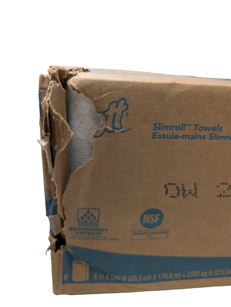 All rolls are new and in perfect condition , there is damage to the outer box which will be repaired upon shipping. The Scott® Control MOD Slimroll 1-Ply Paper Towels are FSC® Certified, ensuring they are environmentally friendly. With 580' of paper towels per roll, this product offers a high-quality option for household use. The slim design makes it easy to use and store, while the more than 500 sheets per roll provide ample supplies for everyday needs. Ideal for general household supplies, these paper towels are a reliable choice for keeping your home clean and tidy.