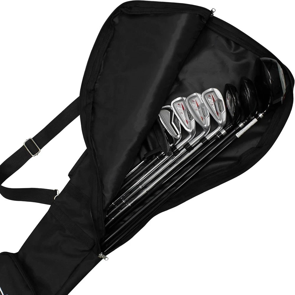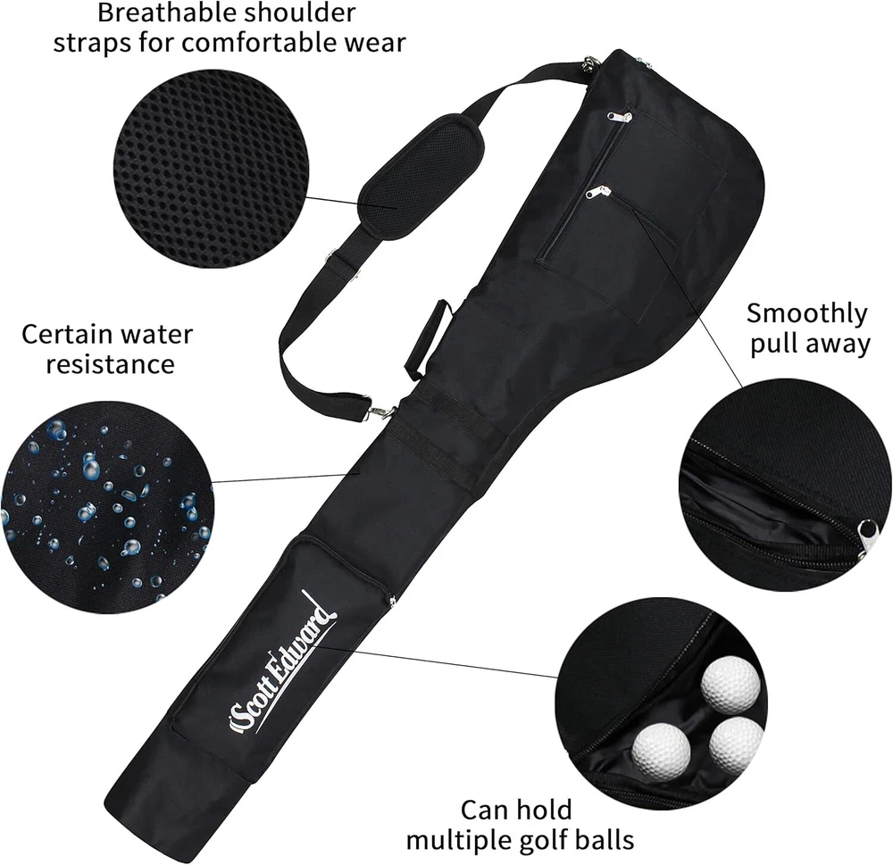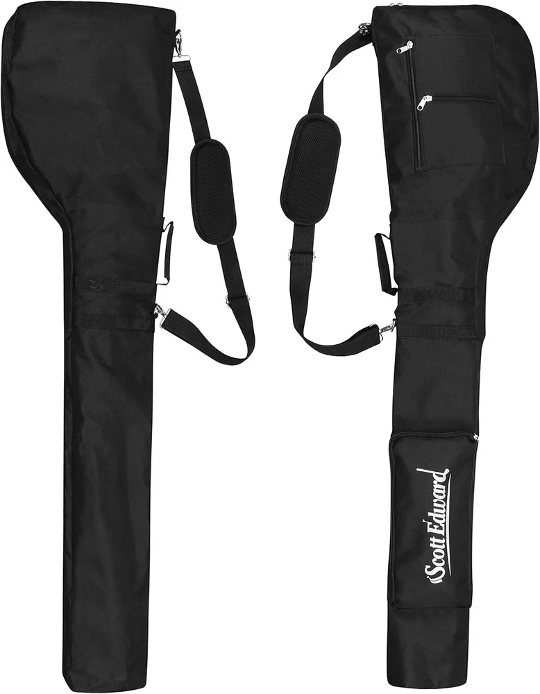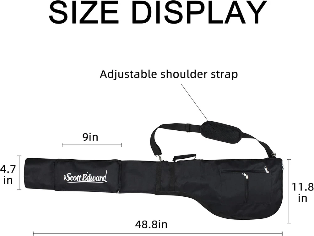 Scott Edward Foldable Golf Club Carry Bag, Portable Sunday One Size, Black Product Details Brand: Scott Edward Color: Black Material: Nylon Strap Type: Adjustable Product Dimensions: 12.9"L x 6.7"W x 49.2"H Item Weight: 16 ounces Number Of Pockets: 3 Manufacturer: Scott Edward Sports Item Package Dimensions L x W x H: 11.14 x 7.72 x 2.24 inches Package Weight: 0.47 Kilograms Item Dimensions LxWxH: 50 x 12 x 3 inches Brand Name: Scott Edward Suggested Users: Unisex-Adults, Unisex-Kids Size: One Size Brand: Scott Edward Color: Black Material: Nylon Strap Type: Adjustable Product Dimensions: 12.9"L x 6.7"W x 49.2"H Item Weight: 16 ounces Number Of Pockets: 3 Manufacturer: Scott Edward Sports 1.Zipper closure: avoid moist air and rainwater affecting the club 2.Travel Case: lightweight,foldable,high capacity,can hold 7-12 clubs,tees,towels,balls,Water cup and on. 3.Adjustable shoulder strap with metal buckle. Strong load-bearing capacity, suitable for men, women, children 4.Size: 1.25M*0.33M*0.17M(L*W*W)/49.2*12.9*6.7 in,Fits Max Driver 5.Made of waterproof and scratch resistant materials,high quality and durable