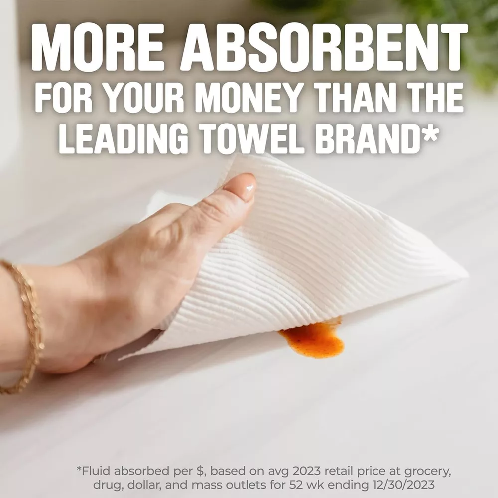 Scott Paper Towels, Choose-A-Sheet, 30 Double Rolls (2 Packs of 15) = 60 Regular Rolls (100 Sheets Per Roll) 30 Double Rolls of Scott Paper Towels (2 packs of 15), 100 sheets per roll (30 double rolls = 60 regular rolls); product and packaging may vary Trusted combination of value, strength, and absorbency, so you can clean your mess for less* (*than the leading national towel, fluid absorbed per dollar, based on avg retail price at grocery, drug, dollar, and mass outlets for 52 wk ending 6/17/23) Scott Paper Towels are more absorbent for your money** than the leading national towel (**Fluid absorbed per dollar, based on average retail price at a combination of grocery, drug, dollar, and mass outlets for 52 week 12/31/23) Our most absorbent towel ever, designed for fast and easy cleaning to tackle everyday messes; Scott leaves surfaces virtually lint-free for a simple, efficient clean you can trust FSC Certified: 100% of our fibers come from responsibly managed forests; Scott Choose-A-Sheet size allows you to choose the right sheet size for any task What are Scott Towels made of? Scott Paper Towels are made from a combination of soft and hardwood pulp fibers and water. The end result is a fast-absorbing towel that locks liquid to get the job done quickly. Are Scott Towels reusable? No. These paper towels are designed for fast and efficient clean up. Each sheet is recommended for single use. Is it safe to use Scott Towels in the microwave? If the product is used for microwave cooking, we recommend that you always note the precautions and follow the guidelines outlined in the microwave oven owner's manual, as any paper product can burn during microwave cooking if conditions are right. Are Scott Towels flushable? No. Our paper towels are designed to hold up to mess and not to break down for flushability. Are Scott Towels sustainably sourced? Yes! The wood pulp used in Scott Paper Towels comes from responsibly-managed forests that are replanted or naturally regenerated after harvesting. The cores are also 100% made from recycled paper. Take on daily messes with Scott Choose-A-Sheet Paper Towels, our most absorbent towel ever. With more sheets per dollar*, each paper towel roll comes with 100 sheets per roll and features Scott’s Choose-A-Sheet size that lets you choose the right sheet size for your task. These disposable paper towels are a trusted combination of value and strength, so you can use them anytime, anywhere, no matter the mess. Scott Paper Towels are more absorbent than the leading brand for your money** to help you tackle everyday messes at the right value. Plus, our paper towels are virtually lint-free when you wipe to help you leave any surface spotless. Scott is FSC-certified and has 100% paper fibers sourced from responsibly managed forests. Buy Scott Paper Towels in bulk and save yourself extra deliveries. (*vs. the leading brand regular roll select-a-size) (**Fluid absorbed per dollar, based on average retail price at a combination of grocery, drug, dollar, and mass outlets for 52 week ending 12/31/23)