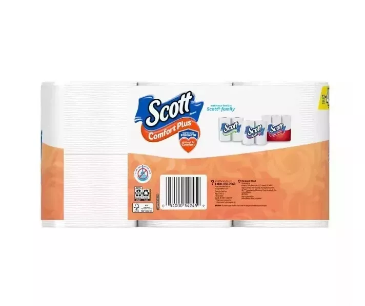 Scott Toilet Paper Mega Roll Comfort Plus, 425 Sheets Per Roll 12 Rolls Per Pack Scott ComfortPlus toilet paper is the only 1-layer bath tissue that offers everyday comfort plus a little extra. 3X stronger than the leading bargain brand, Scott ComfortPlus is sewer-safe and septic-safe and designed with strength and comfort in mind. Scott ComfortPlus toilet paper combines just the right amount of softness and strength by providing thick and plush sheets, for a trusted, comforting clean. Scott bath tissue is sustainably sourced from responsibly managed forests. Features and further details 12 mega toilet paper rolls = 48 regular rolls 3X stronger 1-layer toilet paper vs the leading value brand Thick and plush sheets provide a trusted, comforting clear Sewer-safe and septic-safe bathroom tissue Scott bath tissue is sustainably sourced from responsibly managed forests