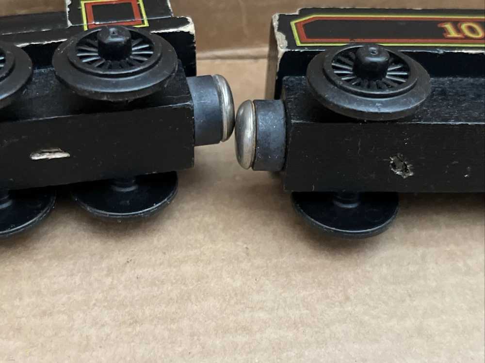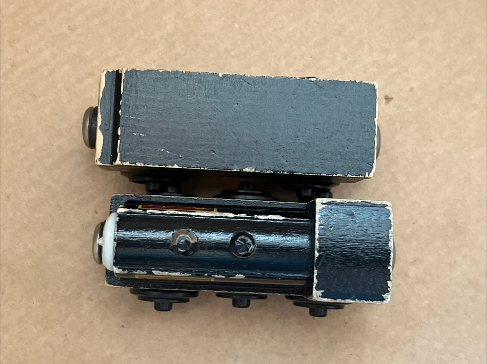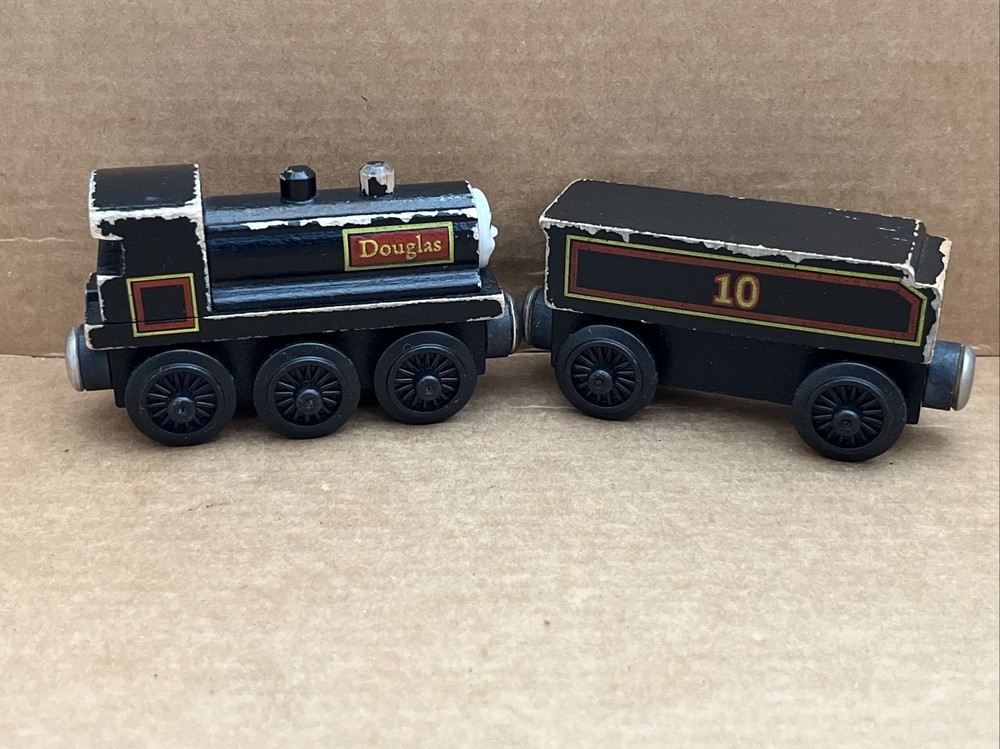 DOUGLAS 1992 & TENDER Thomas & Friends Wooden Railway train tank engine First year or First edition. Hard to tell but I don’t think it’s got the hand-painted eyes. VTG staples and flat Magnets. See photos for wear and tear. Not too bad. Ships USPS Ground Advantage