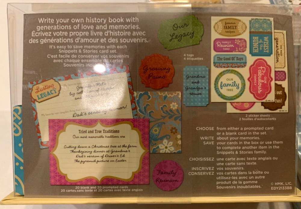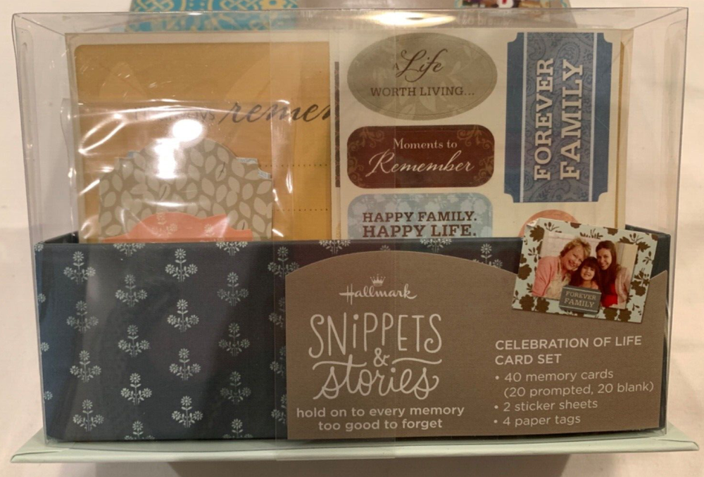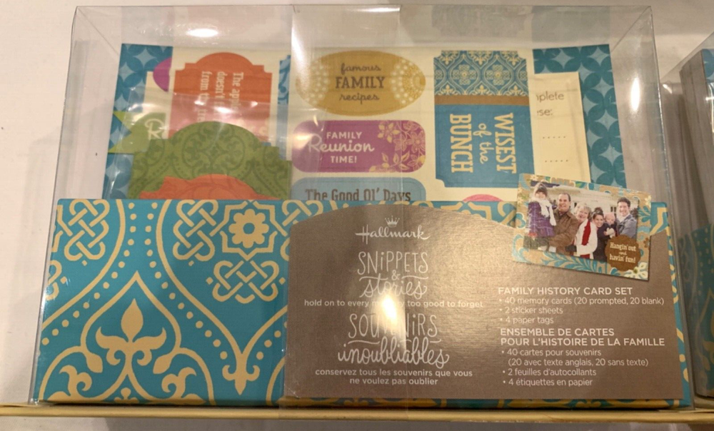 This is a set of 3 Hallmark scrapbooking style card kits -- 2 of the kits are the same: Family History Card Sets, and 1 is a Celebration of Life Card Set. Each set includes 40 memory cards, 2 sticker sheets and 4 paper tags so you can create your very own customized memory cards.