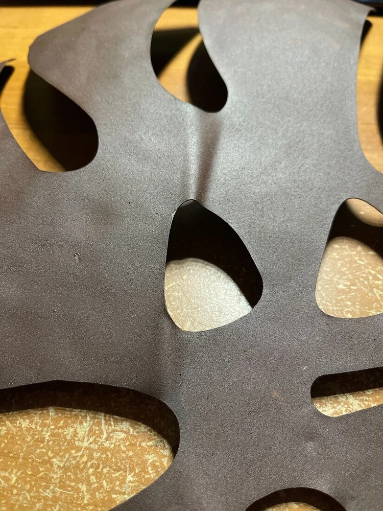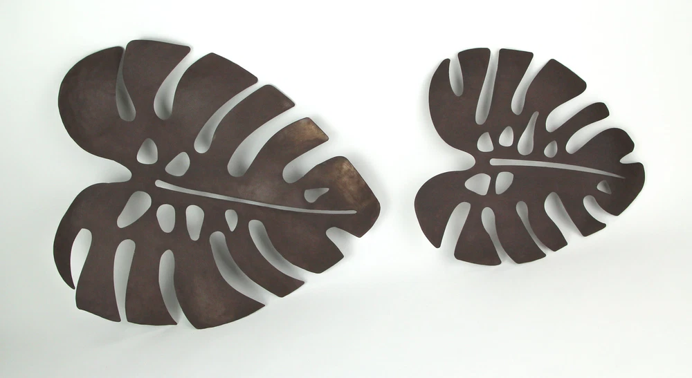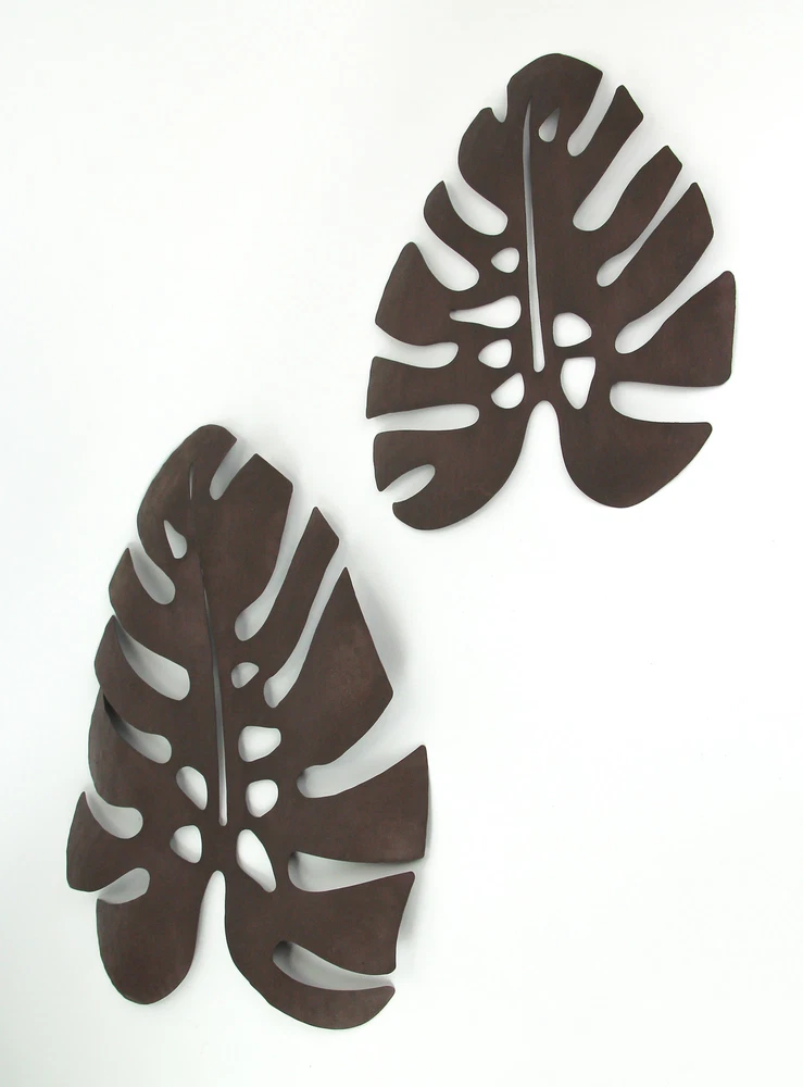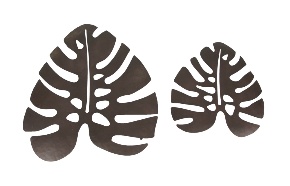 NOTE: DUE TO BENT LEAVES this item is being sold at a reduced price. Please see last photo for damages/defects. Give your home a taste of the tropics with this set of metal monstera leaf wall sculptures. Crafted from metal, the sculpture feature the signature leaf silhouette of Monstera deliciosa, otherwise known as the Swiss Cheese plant. They have a rustic, oxidized brown finish for a great antique look. Built-in hangers on the top and side allow you to display them vertically or horizontally, for a quick and simple way to enhance the decor of your living room, bedroom, bathroom, kitchen, patio, or den. The larger leaf measures 24 inches high, 20.75 inches long, 1.25 inches deep, and the smaller one measures 15.5 inches high, 14.5 inches long, 0.5 inches deep. Our eBay Store About Us Add to Favorite Sellers Set of 2 Antiqued Brown Metal Monstera Leaf Sculptures Wall Hanging Tropical Decor NOTE: DUE TO BENT LEAVES this item is being sold at a reduced price. Please see last photo for damages/defects. NOTE - DUE TO BENT LEAVES this item is being sold at a reduced price. Please see last photo for damages/defects. OVERALL SIZE - Large - 24 Inches High, 20.75 Inches Long, 1.25 Inches Deep. Small - 15.5 Inches High, 14.5 Inches Long, 0.5 Inches Deep DURABLE MATERIAL - Crafted of Metal For Years of Maintenance Free Display UNIQUE FINISH - Weathered Brown Finish Gives Them an Aged, Antique Look VERSATILE - Can Be Mounted Vertically or Horizontally NOTE: DUE TO BENT LEAVES this item is being sold at a reduced price. Please see last photo for damages/defects. Give your home a taste of the tropics with this set of metal monstera leaf wall sculptures. Crafted from metal, the sculpture feature the signature leaf silhouette of Monstera deliciosa, otherwise known as the Swiss Cheese plant. They have a rustic, oxidized brown finish for a great antique look. Built-in hangers on the top and side allow you to display them vertically or horizontally, for a quick and simple way to enhance the decor of your living room, bedroom, bathroom, kitchen, patio, or den. The larger leaf measures 24 inches high, 20.75 inches long, 1.25 inches deep, and the smaller one measures 15.5 inches high, 14.5 inches long, 0.5 inches deep. Product Details Color Rust Height 23 Length 20.75 Weight 2.4 LB