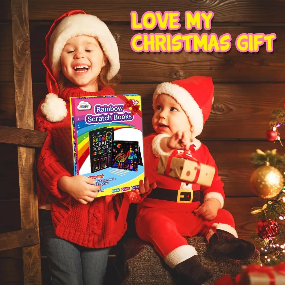 1.Awesome Educational Rainbow Art Notebook Set: This art craft notebook is perfect for art lover. Good art supplies for your toddlers to practice drawing and make some simlpe gift card or bookmark; Using this rainbow art book, no ink & non toxic, kids can drawing easily, no worries about ink ending up on the house and carpets. 2.Safe & Fun Art Gifts for Kids: Our magic scratch off notebook is made of thick paper, no paint, non-toxic, non-polluting, and won't harmful for kid's; An ideal educational toy for girls & boys learning to draw. Perfect travel toys art activities gifts for 3 4 5 6 year old girls boys 3.A Fun & Magic Gift for Boys Girls: Our raibow art craft book set made of premiun paper that safe, no ink & non toxic, safe for kids! Our art set can be easily cleaned and durable to use. Keep bringing endless joy to your children. Perfect gift for birthday, art party, Easter, Christmas and another hand made-themed party activity game. 4.Promote Parent-child Relationship: Rainbow art notebook not only to promote educational development, improves kid’s motor skills and boosts their imagination into treasured arts. But also Enhance the interaction activities between children and parents, bring a good fun childhood time 5.Educational Drawing Art Toys Gift: Kids draw as they please, which can not only enhance the imagination of the brain, but also exercise the children's hand-eye coordination and color perception. It's also a communication link between parents and children, sharing their thoughts and love by drawing together! Product Description The video showcases the product in use. The video guides you through product setup. The video compares multiple products. The video shows the product being unpacked. CHECK OUT ZMLM' ENTIRE RANGE OF PRODUCTS! Add to Cart Add to Cart Add to Cart Add to Cart Add to Cart Add to Cart Customer Reviews 4.7 out of 5 stars 17,854 4.7 out of 5 stars 281 4.6 out of 5 stars 2,320 4.7 out of 5 stars 7,898 4.6 out of 5 stars 347 4.7 out of 5 stars 349 Price $9.99 $ 9 . 99 $9.99 $ 9 . 99 $8.99 $ 8 . 99 $8.99 $ 8 . 99 $4.99 $ 4 . 99 $17.99 $ 17 . 99 AGES 3+ 3+ 3+ 3+ 3+ 3+ NUMBER OF PLAYERS 1+ 1+ 1+ 1+ 1+ 1+ GAME TYPE Arts & Crafts Arts & Crafts Arts & Crafts Arts & Crafts Arts & Crafts Arts & Crafts GREAT GIFT ✔ ✔ ✔ ✔ ✔ ✔ FAMILY GAME ✔ ✔ ✔ ✔ ✔ ✔