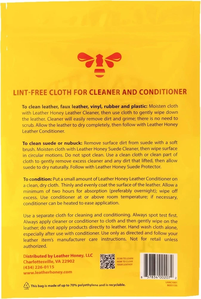 Scratch-Free Microfiber Cloth for Leather Conditioner & Cleaner - Since 1968 ‹ › ‹ › ‹ › ‹ › ‹ › ‹ › ‹ › Scratch-Free Microfiber Cloth for Leather Conditioner & Cleaner Experience the luxurious touch of our Scratch-Free Microfiber Cloth, designed exclusively for maintaining and conditioning your fine leather goods. Features: Trusted Tradition: Proudly made in America since 1968, we have dedicated over 50 years to perfecting leather care. High-Quality Microfiber: Our lint-free microfiber cloth is specially designed to be gentle on leather while ensuring optimal application for your leather conditioner and cleaner. Perfect Pair: Ideal for use with Leather Conditioner, Leather Cleaner, and other premium leather care products. Scratch-Free Assurance: This soft, small pile microfiber cloth guarantees no scratches or harm to your cherished leather items, providing peace of mind with every use. Benefits: Protect Your Investment: Maintain and restore the beauty of your leather furniture, boots, jackets, and more with precision. Effortless Application: Designed for both large-scale and small conditioning projects, making your leather care routines easy and effective. Waste Not, Want Not: Use our microfiber cloth to ensure every drop of your leather conditioner and cleaner is absorbed and distributed evenly, reducing product wastage. Why Choose Our Scratch-Free Microfiber Cloth? When it comes to caring for your leather, the right tools are essential. Enhance the longevity and appearance of your leather with our high-quality microfiber cloth, meticulously crafted for optimal performance. Join the ranks of leather aficionados who trust our premium products for their unique needs. Elevate your leather care experience today - order your Scratch-Free Microfiber Cloth and indulge in the luxury of well-maintained leather! Shipping Free & Fast Shipping - We offer free shipping to most of the USA with a normal delivery time of 3-7 days. However, due to the current situation, additional delivery time (up to 3 weeks) may be required for some items. Alternative Carriers - We may use alternative carriers (e.g. USPS, FedEx, UPS, etc.) to ensure your package arrives safely and on time. Due to the use of multiple carriers, we are unable to provide a tracking number automatically. Handling Time - Orders are processed and shipped within 1-2 business days of receiving cleared payment. Shipping Restrictions - Shipping to Alaska, Hawaii, Puerto Rico, Guam, and other US territories may incur shipping charges or delivery restrictions. Please contact us before ordering, or your order can be refunded/cancelled. State Restrictions - There may be restrictions based on your state of purchase. For example, certain items may not be shipped to California due to state regulations. Contact for Tracking Updates - If you require tracking updates or have any concerns about the delivery of your order, please feel free to contact us, and we will be happy to assist you. Return 30-Day Hassle-Free Returns - We want you to be completely satisfied with your purchase. If you are not, you can return the item within 30 days of receiving it for a full refund or exchange. Easy Return Process - To start a return, simply contact us and we will provide you with a prepaid return shipping label and detailed instructions. Restocking Fee - There are no restocking fees for returns. However, the buyer is responsible for return shipping costs if the return is not due to a seller's error. Refund Processing Time - Refunds will be processed within 5 business days of receiving the returned item in its original condition. Payment We accept all major credit cards, PayPal, and Apple Pay for your convenience. Your payment information is secure and encrypted to ensure a safe and seamless transaction. Please complete your payment within 3 days of purchase to avoid any delays in shipping. Feedback Your feedback is extremely important to us. We strive to provide the best products and customer service possible. If you are satisfied with your purchase, please take a moment to leave us a positive review. If you have any concerns or issues with your order, please contact us before leaving negative feedback. We are committed to resolving any problems and ensuring your satisfaction. Contact Us If you have any questions or concerns, please feel free to reach out to our customer support team. You can contact us through the eBay messaging system. We are available Monday to Friday, 9:00 am to 5:00 pm EST, and we will do our best to respond to your inquiry within 24 hours. Buy it now and enjoy a pleasant shopping experience! UPC: Not Set Item Height: Not Set Item Length: Not Set Item Width: Not Set Unit Quantity: 1 Material: Microfiber Features: Lint Free,Scratch Free Theme: Leather Care Brand: Unbranded Type: Cloth Color: White For: Leather Size: Small Capacity: Unit MPN: Not Set Number in Pack: 1 Country/Region of Manufacture: Not Set Model: Not Set Item Weight: 0.11 lbs Unit Type: lb