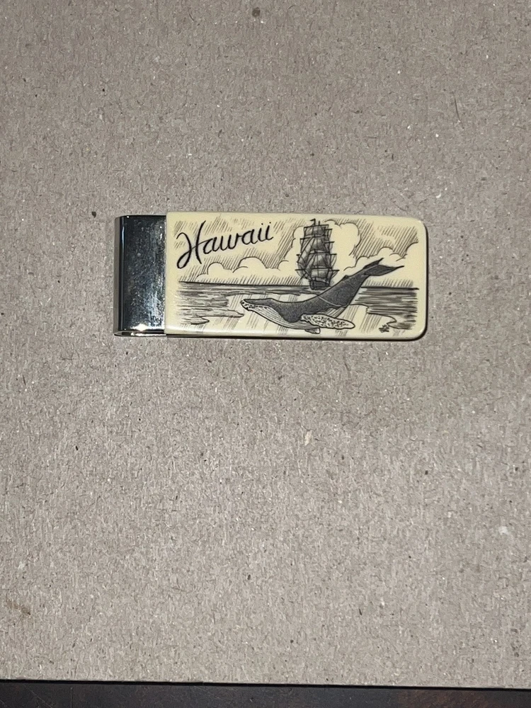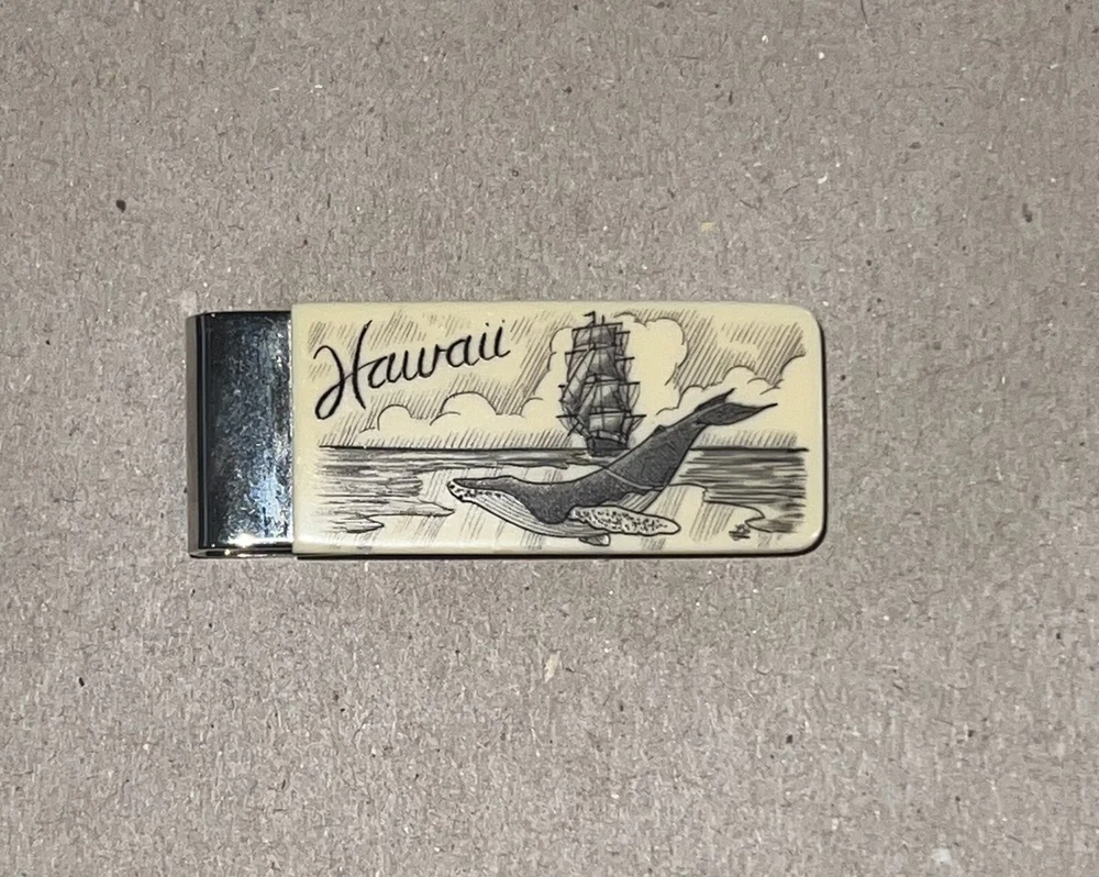 Scrimshaw Style Ship With Humpback Whale Money Clip