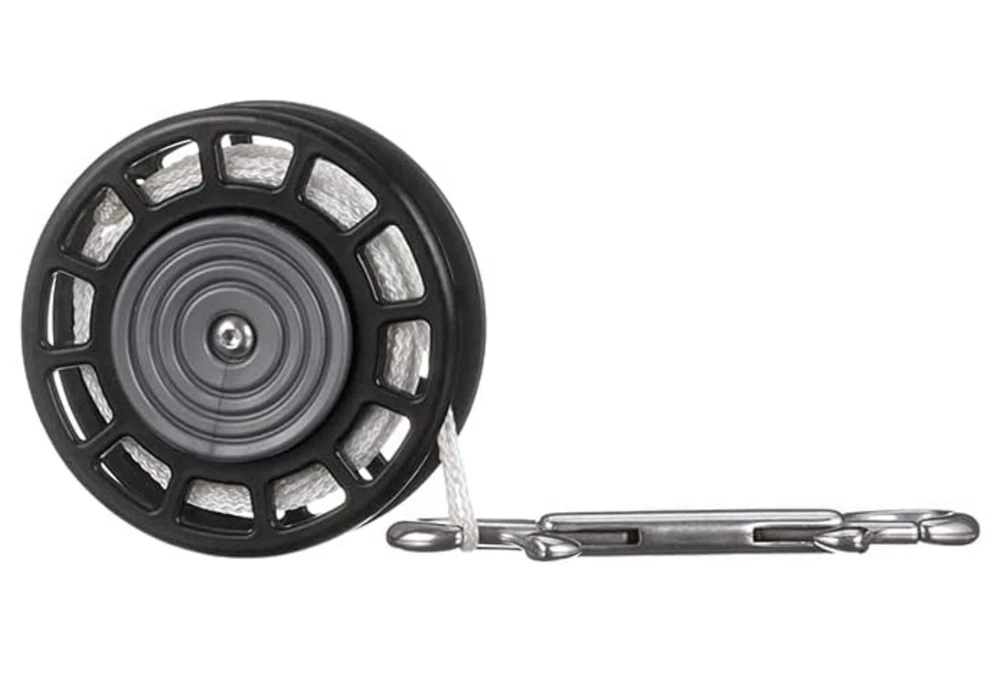 Scubapro S-Tek Spinner Spool 50' The Scubapro S-Tek Spinner Spool 50' offers ultimate control and ease of use in a compact package. Its innovative spinner discs remain static while the spool spins, preventing unwanted rotation for a more secure grip during line deployment. With an adjustable tension feature by squeezing the discs, you gain precise control through its disc brake effect. Built from durable fiberglass-reinforced nylon with stainless-steel components, this spool is designed for long-lasting performance. It also includes a stainless-steel double-end bolt snap for convenient attachment to your gear, making it ideal for divers needing shorter line lengths. Features: · 50' line length · Spinner discs for secure grip and easy control · Durable fiberglass-reinforced nylon construction · Adjustable tension with disc brake effect · Stainless-steel double-end gated bolt snap
