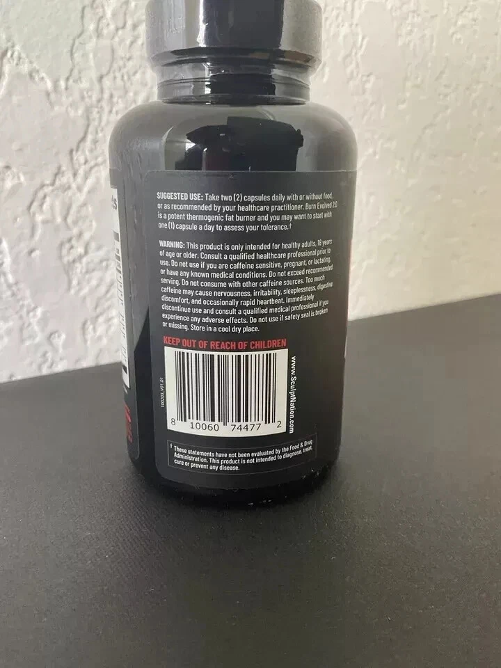 Sculptnation Burn Evolved 2.0 Thermogenic Fat Burner 60 Caps Gluten Free. NEW & IMPROVED. AUTHENTIC SCULPTNATION product, bought directly from the manufacturer, not a cheap knockoff/copy. BEWARE OF FAKES/ KNOCKOFFS. FYI If a seller doesn’t post pictures that THEY TOOK of the ACTUAL product they have in their possession, its a high probably that they are selling a knockoff so be on the lookout. Can guarantee that the Supplement is BRAND NEW, the factory seal has never been broken or even tampered with. Will be shipped to you as it arrived from the manufacturer. (See pics) The Expiration on this current batch is January 2026. My inventory is constantly being updated with the freshest batch and sometimes i forget to update the listing Each bottle contains 60 fat burning capsules or approximately one months supply. Ships free first class, same day item is sold. Most of the details about this supplement can be found on the bottle so i made sure to take detailed high quality photos. Any questions or concerns you have regarding the listing, or any details you are unsure about please message me before buying so that I can answer your questions/ address your concerns. You can buy from me with confidence, both in the integrity of the product as well as the speed/reliability with which I will ship. If you’re happy with the transaction (I know you will be), please leave me a positive review it would help tremendously and I would return the favor. Thank you and have an awesome day.