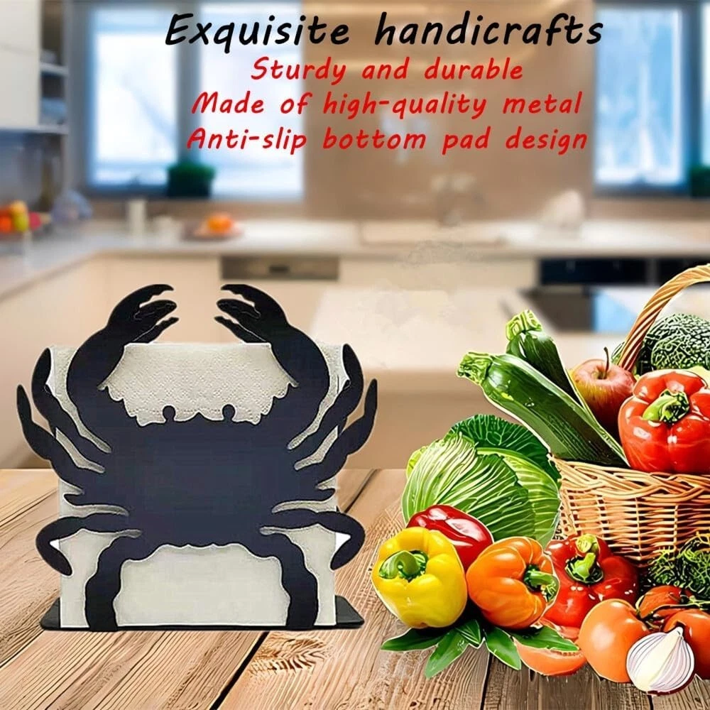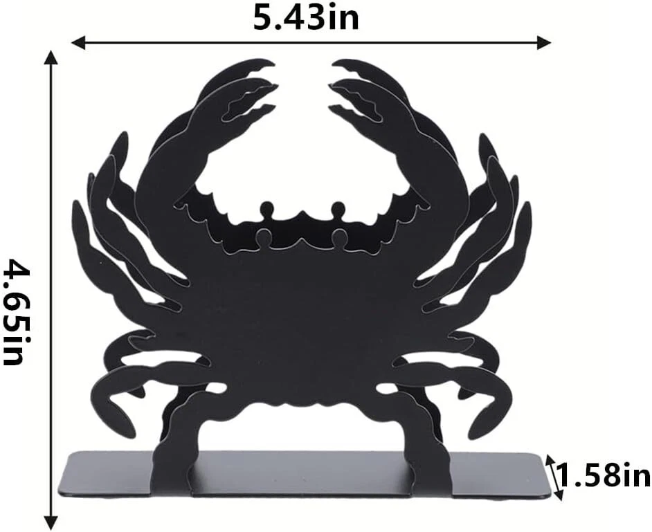 About this item ZZHMASPLAY Napkin Holder - 1.58"D x 5.43"W x 4.65"H perfect size is suitable to hold standard size square paper napkins. While its compact size allows you to conveniently display the napkin dispenser on a table or counter top surface Durable and Sturdy Construction: Made from wear resistant iron with finger-proof coating, which can effectively prevents fingerprint. Also with anti-slip bottom pad design, this napkin holder will not scratch the table top, very sturdy and durable to use. Simple and Elegant Home Decor: Stylish cutout metal Crab design, simple and elegant, suitable for a wide range of occasions such as kitchen, party, picnic and cafe. Ideal For Indoor & Outdoor - Use the free-standing tissue holder at the dinner table, or in the kitchen counter next to the sink. Also, can be used outside for a cocktail napkins, picnic or BBQ etc. This simple, elegant metal tissue dispenser is a great addition for daily use. Easy to Clean: For hassle-free clean up, the whole napkin holder is made of solid metal without small parts, just use running water to wash, or simply wipe with a rag, then you can make the napkin holder clean as new.
