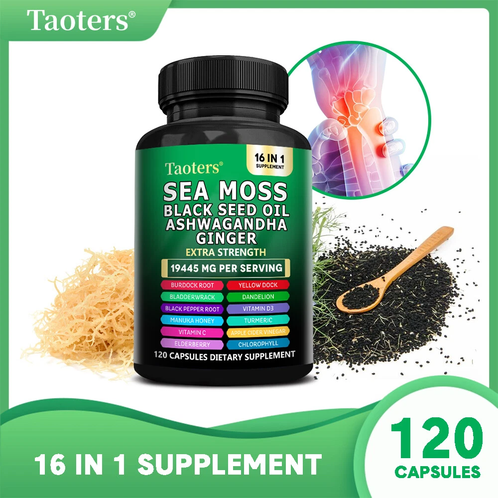 eBay Welcome to our store About the item Sea Moss Descript ion Taoters Sea Moss Capsules For Women and Men - Our Seamoss Capsules and Black Seed Oil for hair includes 16 ingredients such as Turmeric Curcumin Capsules, Bladderwrack capsules, Burdock roots, Chlorophyll and more! Sea Moss capsules with black seed have been combined and the results are amazing. The Raw Sea Moss and Black Seed Oil Capsules You’ve Been Looking For - Taoters provides 6 full-dose products in one, containing a full Irish Sea Moss Powder, Black Seed Powder, Ashwagandha Extract, Bladderwrack Powder, and Burdock Root Powder in a convenient all in one supplement! Finally, irish sea moss wildcrafted, black seed, ashwagandha powder, bladderwrack herb and burdock root Capsules have been packed into one convenient solution that's quick and easy to take. Introducing the MultiMineral Blend - Sea Moss Capsules, Black Seed Oil Capsules, Ashwagandha Root, Bladderwrack Capsules and Burdock Root Capsules that contain 10+ powerhouse ingredients, turmeric curcumin capsules, Apple Cider Vinegar, Chlorophyll, Manuka Honey, and more! These sea moss bladderwrack burdock root capsules are alternatives to sea moss gummies, black seed oil gummies, and ashwagandha gummies for men. Not usual sea moss raw organic, wildcrafted sea moss gel or ashwagandha supplements. A Powerful All In One Supplement - Taoters is overflowing with potent Sea Moss Supplement, Black Seed Oil capsules, Aswagandhada capsules, Burdock Root, Bladderwrack and turmeric powder. Clear out those countless supplements in your supplement cabinet, and replace it with just one seamoss powder, black seeds oil, aswagandhada capsules, and burdock supplement 16-in-1 formula from Taoters. We made Irish seamoss bladderwrack burdock capsules better by adding black seed. Vetted and Trusted Ingredients - We pride ourselves in offering quality seamoss raw, black seed oil health benefits, ashwagandha root, burdock root, and bladderwrack supplements for our customers. Our seamoss capsules, black seed cumin and ashwangha supplements formulas are proudly made to create trusted seamoss and bladderwrack capsules, black seed cumin oil, ashwagandha for men and bladderwrack supplement. How to take As a dietary supplement, take 2 capsules daily. Storage After opening, please seal and store in a cool place away from direct sunlight. suggestion Keep out of reach of children Fast Shipping Easy return Great support 100% Satisfaction Shipping Returns Payment Feedback Contact Us Shipping All the items will be dispatched within 2 business day after the payment is clear. We are not responsible for any custom duty or import tax. Returns 1. If you need return, please contact us with Email before open a case, let us know the detailed problem and send us some pictures for confirmation. 2. All returned items must be in the original packaging and provide us tracking number, specific reason for the returns. Payment eBay Accepts The Following Payment Methods: 1.Visa 2.Mastercard 3.PayPal 4.Apple Pay 5.Google Pay 6.American Express Card Feedback Customer satisfaction is very important to us. If you have any problem with your order,please contact us and we will do our best to make you satisfied, please do not leave a negative feedback before we resolve your problem. We guarantee that your issue will be solved quickly. As long as you are happy with your purchase of , please leave us a positive feedback. Your feedback is very important to us it affects our search placement on eBay. Contact Us If you have any queries, please contact us via ebay. We usually respond within 24 hours on weekdays. Document