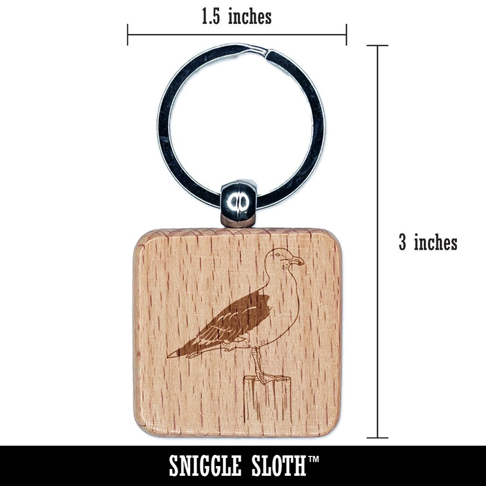 Seagull Bird Engraved Wooden Square Keychain Charm Tag
