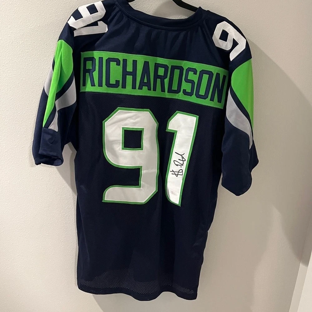 Seahawks Size XL Sheldon Richardson #91 JSA Authenticated Autographed Signed Jersey in Navy Blue Please see all pics for wear and condition Overall good used condition with no major flaws Open to offers Smoke free environment Be sure to follow new items posted daily Major discount applied when bundling Ships from Seattle, WA