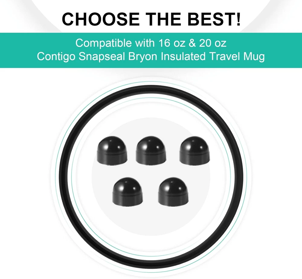 Attention - Please check the related dimension before buying, compatible with 16oz & 20 oz Contigo Snapseal Bryon Insulated Travel Mug, please confirm whether. Safe Material - Each seal ring is made by a professional production process flow line, food-grade silicone, BPA Free, no odor, safe and durable. Cost-Effective - Replace your old stopper for a more thorough cleaning for contigo snapseal lids. Solve the problems of aging, water leakage, breakage, loss, etc., a simple and cost-effective solution to make your contigo byron snapseal travel mugs like new. Package Including – The item including 5* replacement lid seal gasket and 5* rubber stopper for contigo snapseal coffee travel tumbler. Regular replacement is essential! These seals are also good enough for a long time. Please attention: This package is NOT including any mug and lid! Very important! This seal ring is only compatible with ''Contigo Bryon Snapseal'' 16oz & 20oz, please be sure to confirm your water bottle model! If you want to use it for other water bottles, please confirm the size first! Attention - Please check the related dimension before buying, compatible with 16oz & 20 oz Contigo Snapseal Bryon Insulated Travel Mug, please confirm whether.
