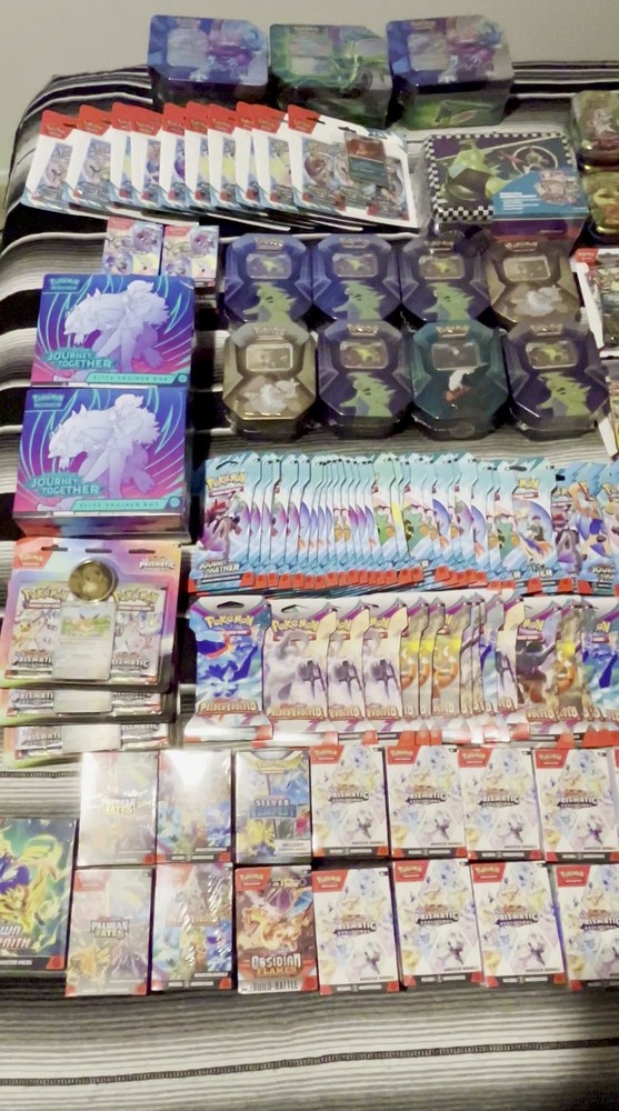 Pokemon Collection Inventory - [ ] 1 Blooming Waters - [ ] 1 Crown Zenith Sea and Sky - [ ] 2 151 Tin 5-Pack - [ ] 4 Zapdos Ex Collection - [ ] 1 Crown Zenith Regileki V Collection - [ ] 1 Crown Zenith Booster Bundle - [ ] 1 Prismatic Evolution ETB - [ ] 1 Shining Fates ETB - [ ] 2 Journey Together ETB - [ ] 1 Trick or Trade Halloween Booster bundle - [ ] 1 Combined Powers Premium Collection - [ ] 5 151 Booster Bundles - [ ] 8 Prismatic Evolution Booster Bundles - [ ] 3 Paldean Fates Booster Bundles - [ ] 2 Paldea Evolved Booster Bundles - [ ] 1 Silver Tempest Booster Bundle - [ ] 1 Obsidian Flames Booster Bundle - [ ] 2 Journey Together Booster Bundles - [ ] 3 Prismatic Evolution 2-Pack Blister (Eevee) - [ ] 8 Prismatic Evolution Mini Tins - [ ] 3 Vibrant Paldea Mini Tins - [ ] 10 Journey Together 3-Pack Blister - [ ] 3 Paradox Clash Tins - [ ] 1 Pokemon Collector Chest Paradox Rift 6-Pack - [ ] 8 Triple Whammy Tins - [ ] 4 Obsidian Flames Coin Booster packs - [ ] 1 Trick or Trade Halloween 5 mini packs - [ ] 19 Paldea Evolved Booster Packs - [ ] 31 Paradox Rift Booster Packs - [ ] 32 Journey Together Booster Packs - [ ] 1 Raw 151 Charizard Full Art - [ ] 4 slabs