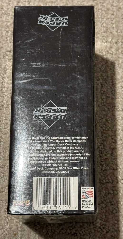The product is a sealed UD 1994 World Cup Preview Soccer Collectors Series Locker Rare Box Set, manufactured by Upper Deck in 1993 for the 1994 season. This sports trading card set features cards related to the FIFA World Cup, specifically from the 1994 tournament. The set likely includes cards in both English and Spanish languages, providing collectors with a unique glimpse into the iconic event through the lens of trading cards. This rare box set offers fans and collectors the opportunity to own a piece of soccer history from the prestigious FIFA World Cup.