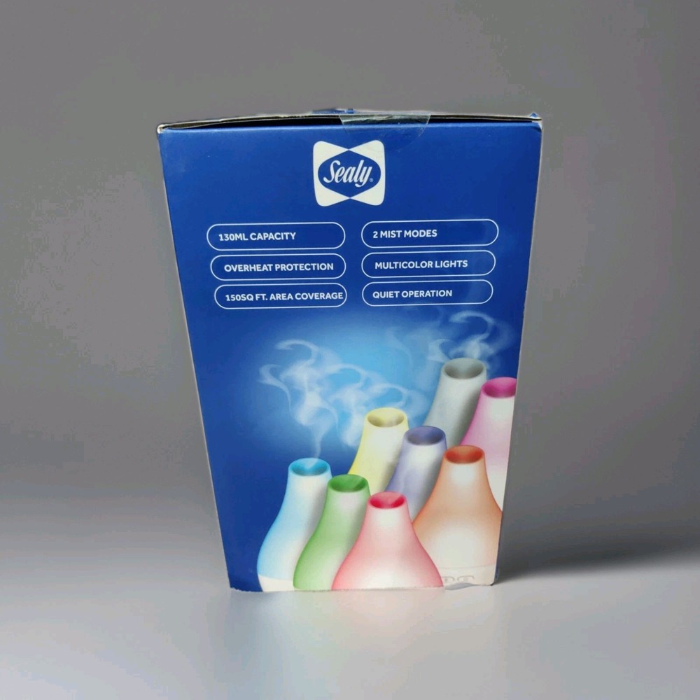 The Sealy Multicolor Light-Up Humidifier Aroma Diffuser is a stylish and functional addition to any room. With its white plastic design and LED lights, this humidifier not only helps to improve indoor air quality but also adds a touch of ambiance. It offers two mist modes for customizable humidity levels and features like a night light, portable design, and quiet operation for a convenient user experience. Perfect for small rooms, this Sealy humidifier from 2022 is an essential component for maintaining a comfortable environment.