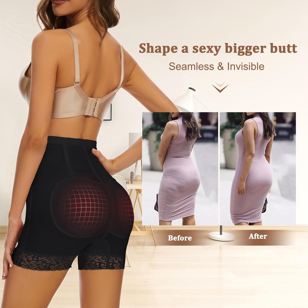Womens Butt Lifter Panties Padded Underwear Seamless Hip Enhancer Shapewear Boyshorts Butt Lifting Panties This butt lifter panties will give you the curves you want. Your butts will look sexier and bigger than ever before, get this booty lifting shorts to experience the amazing difference. You deserve to be more beautiful,sexier and stunningt! Size Details: Please measure your waist and hip size before ordering. Material: 87% Polyester, 13% Spandex ✔Padded Butt Lifter Panties -- Women booty butt pads panties will helps tighten and lift up your hips in a natural way, enhancing and shape your buttock, make your booty look round fuller, bigger and sexier. This butt pads for bigger butt will definitely give you a charming hourglass figure. ✔Removable Pads Design-- Padded underwear for women with 2 removable pads design,fit inside individual pockets,stay in place firmly. Correspond with the characteristics of the body, creating a attractive line of your hip curve.Butt lifting shapewear with comfortable fit and will shape your buttock,create a natural looking butt curves. ✔Lace Trim& Elastic waistband -- Butt enhancer underwear with beautiful lace trim edge,soft and sexy underneath any type of clothing. Hip enhancer pads for women made of quality Polyester and Spandex material. skin-friendly, breathable and comfortable enough to be worn all day long. Wide elastic waistband of hip enhancer panties can keep in place without rolling down. ✔Suitable for All Occasion -- Butt pads for women for those who have flat hips, small hips and post partum belly, muffin tops, it will help redefine the beauty,make you look more confident and sexy on any occasion,perfect for wedding, club, party, dating and daily. ✔Padded butt enhancer underwear can shape a charming figure, especially with the lace around the hem, it also have a good effect of thigh slimmer,prevent thigh chaffing. Wear it under any type of clothes, shorts, skirts, pants, dresses.