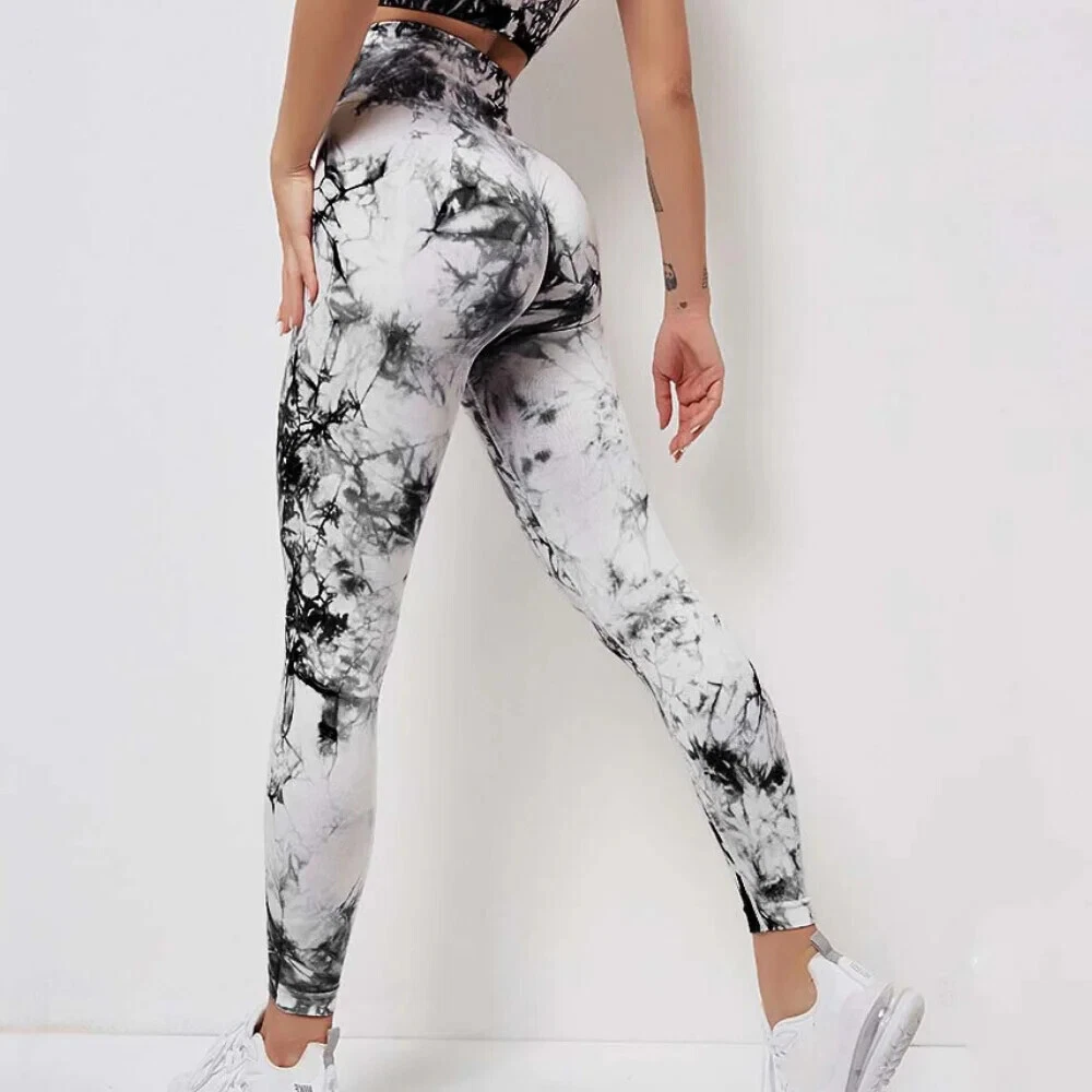 Athleta Womens Size S High Rise 7/8 Leggings Lot of 2 Floral Tie Dye Grey White