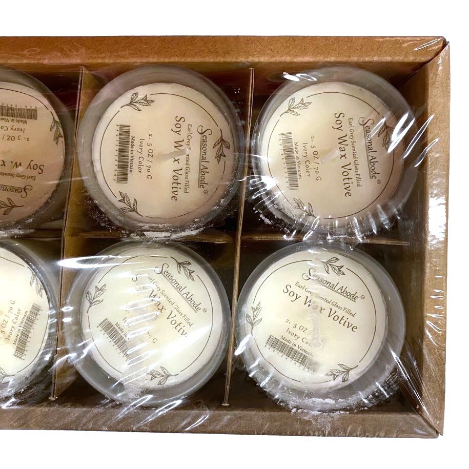 SEASONAL ABODE NEW Create a soft glow in your space with the addition of real soy wax votive white candles. This set of 8 Soy Wax Candles is the perfect way to include the soft glow to your candle holders. The highly favorable use of soy wax in candles offers beneficial properties. The soy wax is made from soybeans, a renewable source of energy and is biodegradable and omit no toxins into the air is it burns. Details 98% Soyben Wax Soy Wax 2% Cotton