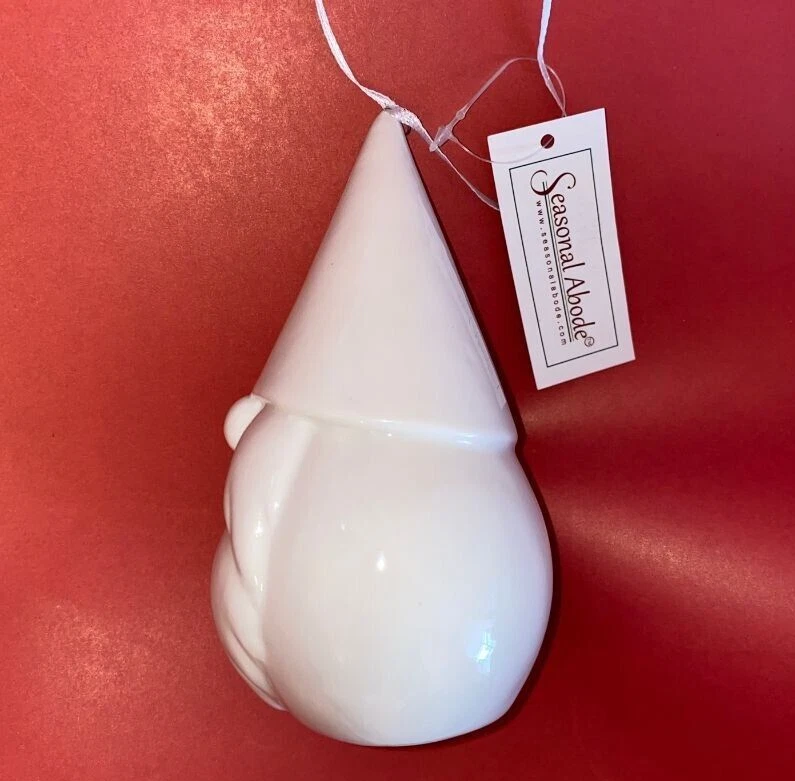 New with tags Seasonal Abode classic large size Christmas white chubby gnome decor ornament or table decoration. Porcelain. 6" Matching tall and smaller size gnome ornaments are available in our eBay store. 73135-139 Bin 2 722196-722197