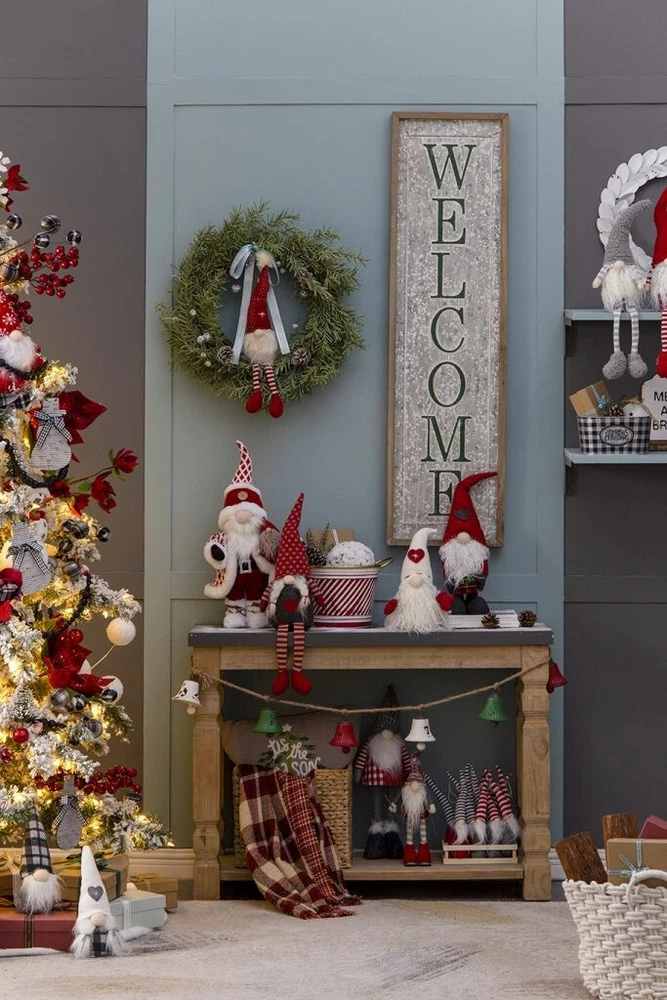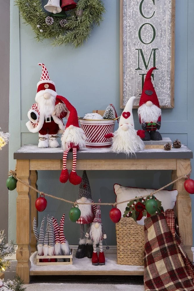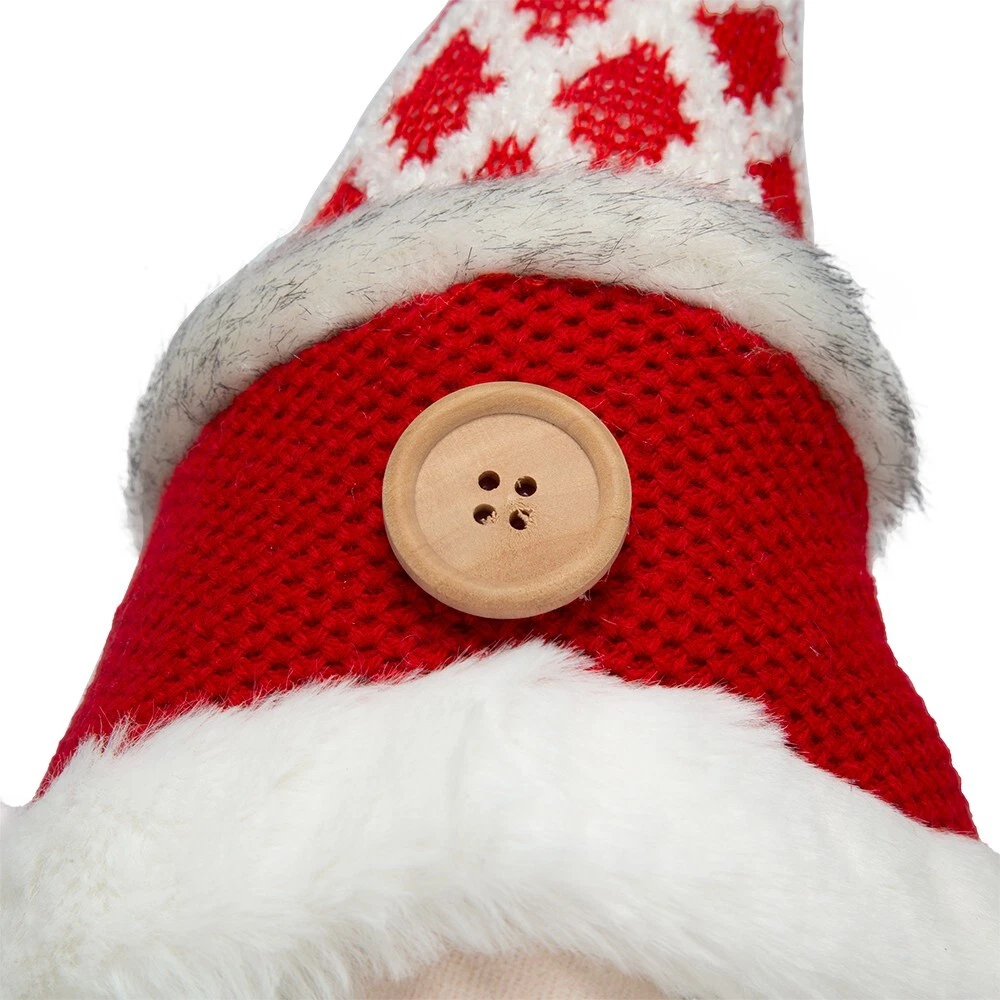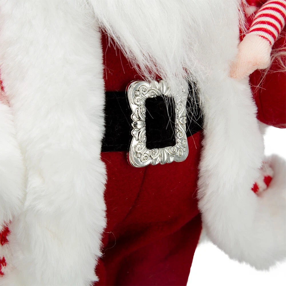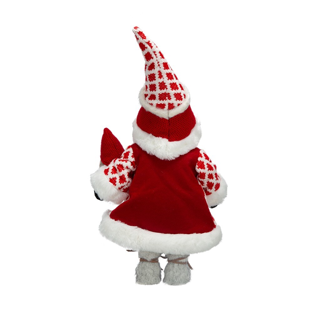 SEASONAL ABODE NEW WITH TAGS Santa Claus Gnome large Christmas decoration. 20" high. White faux fur trim beard, boots, jacket, hat and wooden button.