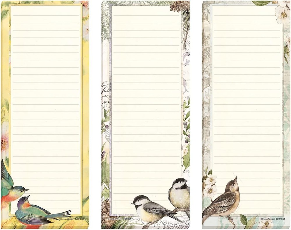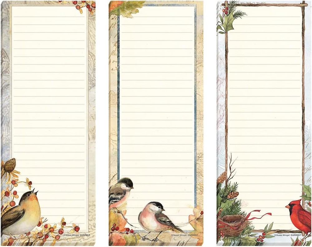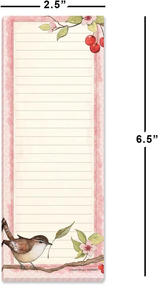 Current Seasonal Birds Magnetic Notepad Set – of 12 Mini Memo Pads, Product Details Color: Birds Sheet Size: 2½ x 6½ Inches Brand: Current Sheet Count: 30 Product Dimensions: 6.5"L x 2.5"W BEAUTIFUL DESIGNS: This cute mini notepad set features 12 unique lined pads, 30 sheets per pad, and each measure 2½ x 6½ inches and feature a colorful variety of feathered friends - 1 for each month of the year MAGNETIC BACKING: Each pad has a strong ½ x 2 inch magnet that can adhere to any metal surface, which makes it great for refrigerators, filing cabinets, lockers, office desks and more VALUE SET: Don’t waste time or money buying notepads one at a time, our bulk sets allow you to get multiple pads at once so you always have a pad available for writing important notes MAKES A GREAT GIFT: Our small notepads are great for giving out as graduation or birthday gifts, or as a token of appreciation for your boss, business partner, teacher, or coworkers to keep at their desk 100% SATISFACTION: If you are not completely satisfied with your purchase, you may return it for a refund or replacement within the return policy