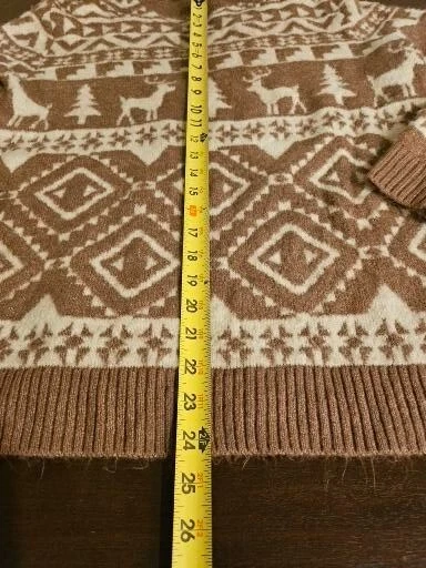 Wrap yourself in the festive spirit with the Magpul Men's Seasonal Cardigan. This knit sweater, available in a versatile beige brown, is a stylish choice for both holiday gatherings and chilly evenings. The comfortable V-neck design and long sleeves offer a classic look that's perfect for layering. Crafted with attention to detail, the sweater features a unique reindeer pattern that adds a touch of whimsy to your winter wardrobe. Its button-down closure ensures a secure and flattering fit, while the regular size S/M caters to a comfortable, true-to-size experience. Embrace the season with this cozy and fashionable addition to your collection. XL Actual measurements are in photos