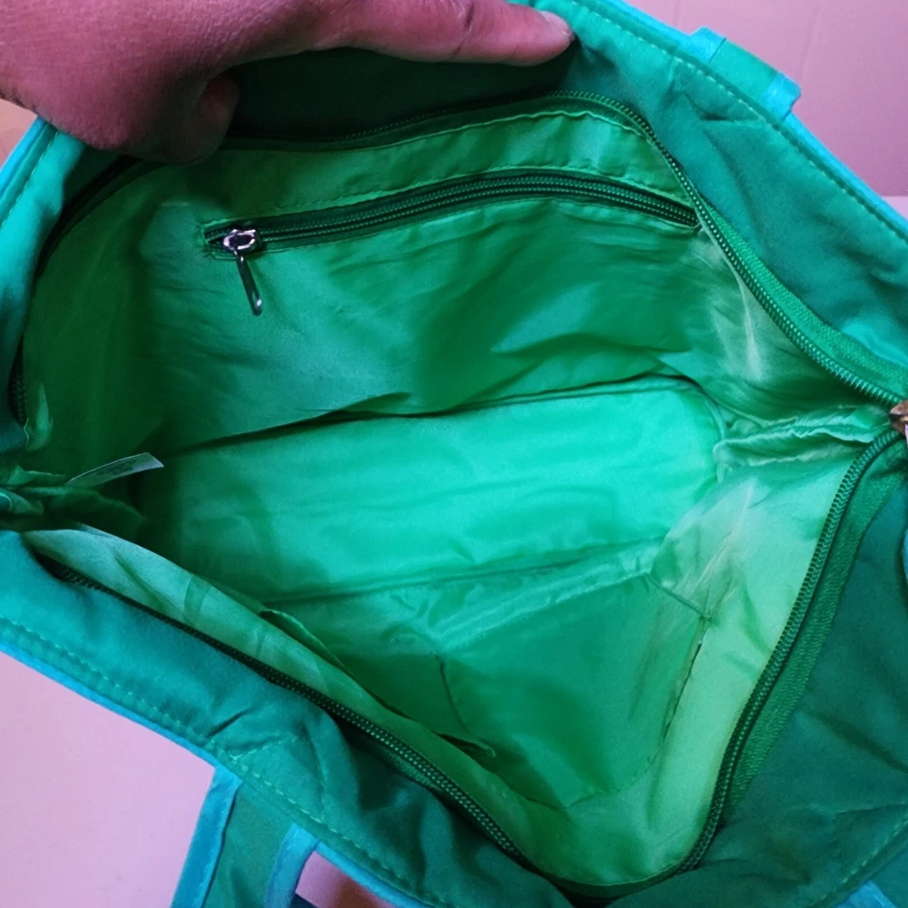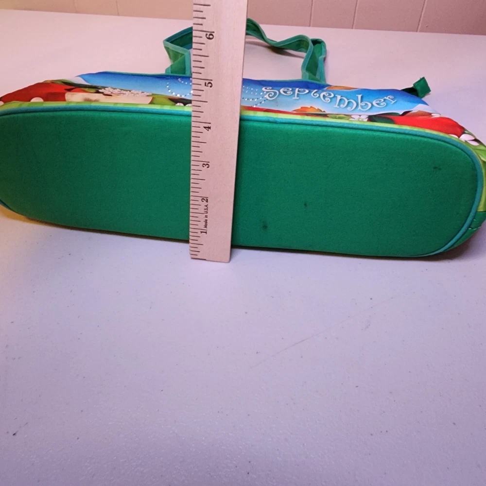 Hardware Color: Green Handle/Strap Color: Green Bag Depth: 4 in Lining Material: Nylon Fabric Type: Knit Features: Inner Pockets Bag Height: 10.5 in Finish: Quilted Country/Region of Manufacture: China Vintage: No Exterior Material: Cotton Model: Grandma Exterior Color: Multicolor Bag Width: 14 in Personalize: No Brand: Seasonal Celebrations Style: Shoulder Bag Handle Drop: 10 in Handmade: No Occasion: Casual, Travel Size: Large Accents: Rhinestone Shape: Rectangle Department: Women Theme: Peasant Lining Color: Green Closure: Zip Handle/Strap Material: Cotton Handle Style: Double Handles
