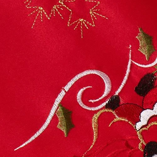 was founded in 1996 and established in the beginning of 1997. 's mission is to preserve the look and touch of many generations back "Grandma's magnificent tablecloth, " while focusing at the same time on easy care, durability and at very aggressive pricing, and they are proud to have accomplished their goals and objectives well beyond their expectations and have ever since enjoyed a sterling reputation among their thousands of customers. Embroidered Christmas Table Topper The beautiful and elegant embroidered Table Topper will enhance your home and dining experience throughout the Christmas season, it features a stunning, detailed, embroidered design. The classic, calming appearance of the table topper adds elegance and character to any room, it will suit any home decor, be it traditional or modern. Its notable benefits include: • Stunning and decorative table linen for an affordable price. • 100% Polyester fabric for long lasting durability. • Ultra-durable, fade resistant, designed to last for years with daily use. • Machine wash cold, gentle cycle, non-chlorine bleach, tumble dry low, iron on permanent press level Stunning embroidered Christmas table topper with a beautifully detailed design. This fresh contemporary design will surely adorn your table decor throughout the Christmas season. Add a dash of holiday cheer! The decoratively embroidered table topper elevates any tables cape. It will suit any home decor, be it traditional or modern. Dress up your table top and update your home with this festive table topper that will enhance and brighten up your home, it'll transform any table into a visual masterpiece. Made of 100% Polyester fabric with a hard wearing construction, for easy care and long lasting durability, it won't easily fray even after long-term use. Machine washable in low-temperature water, gentle cycle, non-chlorine bleach, tumble dry on low heat, iron if needed on permanent press level.