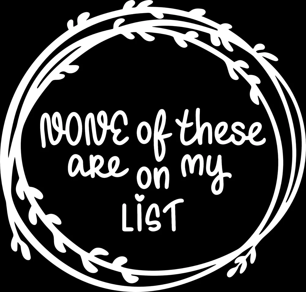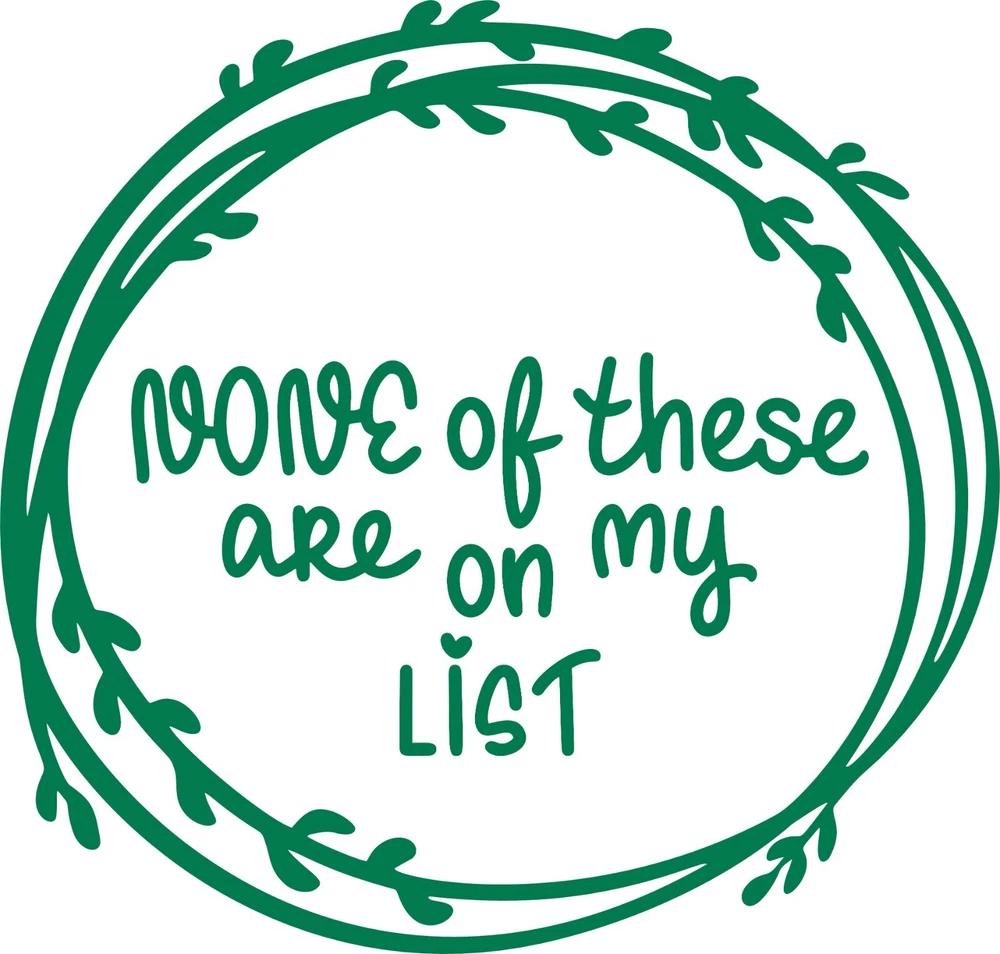 None of These Are on My List Vinyl Decal Add a touch of humor to your holiday shopping with this playful vinyl decal! Featuring the cheeky phrase "None of These Are on My List," this decal is perfect for those moments when your shopping cart is full of surprises and none of them are on your list. Ideal for your car, laptop, or home decor, it’s a great way to express your shopping personality with a laugh. Made from high-quality vinyl, this decal is durable and easy to apply, making it a fun addition to your festive season or a perfect gift for someone who loves a good shopping joke. Features: Premium Quality : Made from high-quality vinyl, this decal is durable, weather-resistant, and long-lasting. It retains its vibrant appearance and adheres securely, ensuring it looks great for years to come. Easy Application : Featuring a simple peel-and-stick application process, the decal adheres smoothly to any clean, flat surface, ensuring a bubble-free application. It can be removed cleanly without leaving any residue or causing damage. Versatile Use : Ideal for various surfaces including walls, windows, doors, mirrors, cars, laptops, and more. Whether you want to personalize your home, office, or vehicle, this decal is versatile and eye-catching. Specifications: Dimensions : 15.5cm x 15cm Material : High-quality. Color : Multiple Available Package Includes : x1 Vinyl Decals. How to Apply: Clean the surface where you want to apply the decal. Peel off the backing paper carefully. Position the decal on the desired surface. Smooth out any bubbles or wrinkles using a squeegee or credit card. Gently peel off the transfer tape, leaving the decal securely in place.