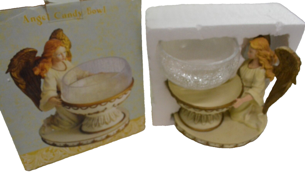 Seasonal ELegance Angel Crackle Glass Candy Bowl In Box Papers the box measures 8" x 9" x 7" Condition is excellent mint in Box the box is missing the Closing flaps on the top Remember We Want you happy We ha ve a no-hassle return policy Email me with Questions Be sure to add me. to your favorites list! Check out my other items! PAYMENT & SHIPPING: Payment is due within 7 days of auction completion. We strive to ship the same day and 90% of our sales ship the same day payment is received. However, we do not work on holidays or weekends so on occasion we will ship within a few days at the most. Please don`t forget to leave positive feedback and a five-star rating. Our system leaves feedback automatically when we receive feedback. We strive to make every transaction a 5-star rating for both of us! Shipping is done via USPS. All items have tracking numbers which are emailed to the customer. Any item valued at $250 and up will have a USPS signature confirmation at no extra charge. If you would like to add insurance, please request it as it is no longer an option through eBay check out I am happy to discount shipping on multiple purchases made in the same auction week. Please wait for me to invoice you with the discount after the auction ends. If you make a payment, we will refund the difference. Shipping to AK, H, PR, APO/FPO takes a little longer to arrive. Please do not give negative feedback or claim item has not arrived due to the post office delay Questions are usually answered within 24 hours, so please contact us with any questions or problems. We strive to resolve all questions INTERNATIONAL BUYERS : Shipping Cost tends to be a little higher than US shipping costs for items. Any item $76 dollars and up is shipped registered, insured, and usually runs about 17-20 dollars depending on the price and weight of an item. Import duties, taxes, and charges (typically collected upon delivery or pickup) are the buyer's responsibility and are not included in the item price or shipping charges. Please check with your country's customs office prior to bidding/buying to determine what these additional costs will be. We claim the value of the package by the ending item price. I cannot claim your item as a gift to avoid customs fees, as it is against the law. International usually takes up to 3 to 6 weeks to arrive so please don't file negative feedback because of the Post Office or Customs delay RETURN POLICY: Returns are accepted up to 14 days after the auction end. Please ask all questions prior to bidding. Almost all of my pieces are handmade, so they will not be perfect. Vintage and used pieces will have some wear to them. I will point out any damage that I see. We strive to describe everything correctly but occasionally we might miss a measurement or blemish so please look at all the pictures carefully. LEGAL TERMS OF SALE: We try our very best to represent our items as accurately as possible. Items are guaranteed as described. Please read the whole description and look at the pictures carefully as they are considered part of the description. Interpretation of conditions and measurements is the buyer’s responsibility. Colors may not always be exact, Cameras will sometimes slightly alter the color of items and it may not match the picture exactly-that is not misrepresentation. Antiques and Collectibles are guaranteed to be authentic. If an item is improperly described it would not be intentional. We are aware that mistakes do happen and want you to be happy as your satisfaction and shopping experience are important to us. We will refund any misrepresented item. By confirming the bid, you are confirming you have read all of the terms listed above and understand them. Thank you.