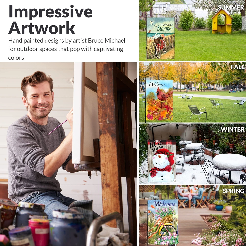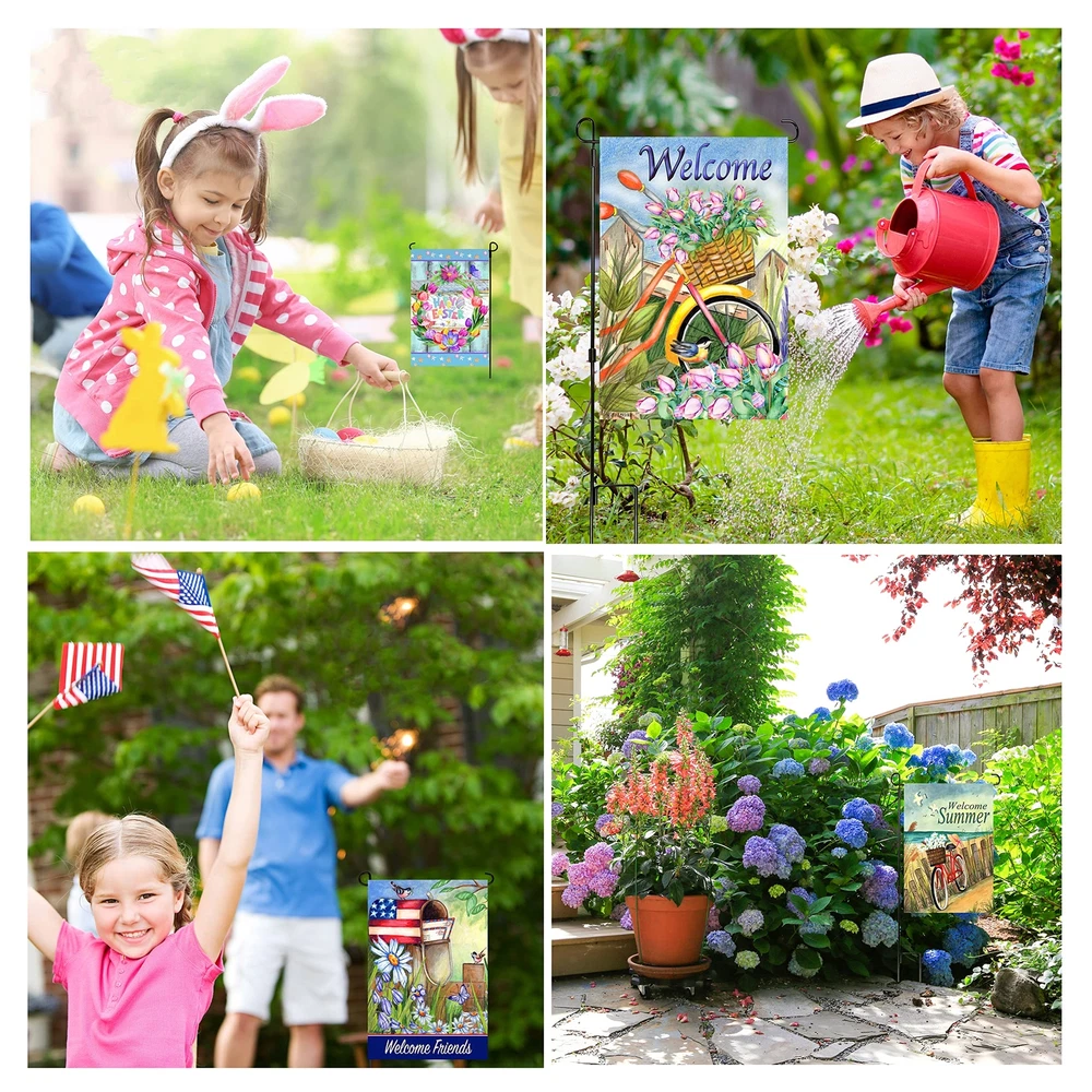Seasonal Garden Flags Set of 10 12x18 inch Double Sided Yard Flag with Anti-wind Clip and Stopper Small Outside Decorative Holidays Outdoor Lawn Banner Spring Welcome Eye-catching garden flags double sided in a convenient 12x18 size, perfect for adding a touch of charm to your outdoor space. Fits most garden flag stands. Celebrate every holiday with our collection of small flags for yard and garden, ensuring your home is always festive and welcoming. Switch out your flags with the changing seasons and hoildays to showcase your style with our selection of seasonal flags for outside. Make your outdoor space come alive with our vibrant holiday flags for outside, designed to bring joy and cheer to your surroundings. ✅ PRETTY GARDEN DECOR: Our Classic seasonal set of 10 hand painted designs will make your home garden look wonderful for every holiday celebration. Our in house designer Bruce Michael is well known in the flag retail market for his popular farmhouse designs. ✅ 10 GARDEN FLAGS: Small yard banner measures 12 x 18 inch and comes in an assortment of Holiday and seasons for you to enjoy. Summer, Fall, Winter, Spring and 4th of July, Halloween, Thanksgiving, Christmas, Valentine's Day, St. Patrick's Day and Easter. ✅ HAND PAINTED YARD DECOR: Local artist Bruce Michael creates each painting with flag trends in mind. Focusing on what consumers want in Welcome garden flags for outside every season and holiday to make their decorations pop with vibrate color. ✅ 3 LAYERS OF PROTECTION: Premium quality banner signs with our sunshield inner layer keeps our garden flags 12 x 18 prime from fading quickly in heavy sunny patio and gardens.You can use your favorite garden flag holder stand. ✅ NO CHEAP CLIPART: Your home and garden will look beautiful with charming yard flags that give your house great curb appeal. Our yard banners are unique mini flags that you can enjoy for years to come. SHIPPING Domestic Buyers - We ship within 3 business days of payment, usually sooner - We offer FREE shipping on all orders! - We only ship to the lower 48 states, no APO/FPO addresses or PO Boxes allowed - We have confidence in our products, but if you are not fully satisfied please contact us within 30 days of purchase and you will get full refund. International buyers – please note: Import duties, taxes, and charges aren't included in the item price or postage cost. These charges are the buyer's responsibility. - Please check with your country's customs office to determine what these additional costs will be prior to bidding or buying. Return Policy - This product comes with 30-Days Money Back Guarantee. - If you receive an item and it doesn't work properly or you don't like it because of any reason at all, - we have a 100% refund/return policy. We will ship you a new item or refund your money for the full sale amount. - For all returned products, buyers MUST contact us for the returning address. * Order Cancellation Policy ** You can return a product for up to 30 days from the date you purchased it. 1. The seller reserves the right to cancel the special case only due to eBay cancellation fee. 2. The decision of seller is the final. 3. The seller will respond to the cancellation request within 2 business days. Please wait for the result of cancellation. 4. In case the cancellation is not completed by some reasons, the buyer can follow the options below to get the refund. 4.1 The buyer can reject the item when it arrives. 4.2 The buyer can send the item back to the seller within 30 days If the buyer receives item (USA Shipment ONLY). The seller will provide the FREE return label to the buyer when the buyer opens " Return Item" case on eBay by using the reason as "Change my mind" ONLY. 5. When buyer has placed the order. The order will be processed and completed by automatic warehouse system within 5 minutes. In case that buyer sends the cancellation request after 5 minutes of placing the order, the request will be rejected. **Sending direct message to cancel the order is not allowed for every case.* Return Policy For the return case - If buyer would like to return the items for refund or replacement, please CONTACT SELLER to receive the free return label from seller. The refund or replacement will be processed with the tracking number of return label which is provided by seller only. The other ways of return which are not approved by seller will not be processed for the refund or replacement.
